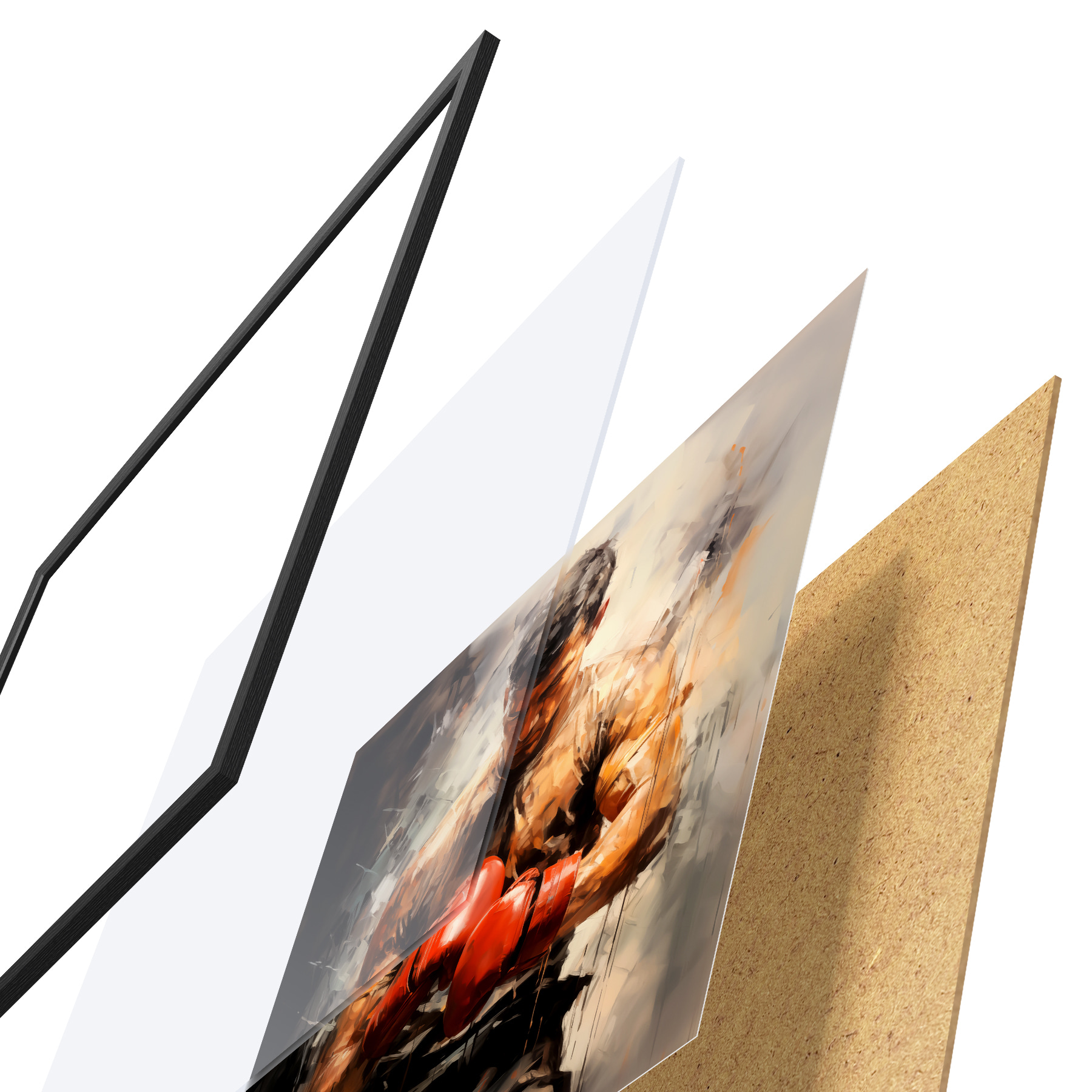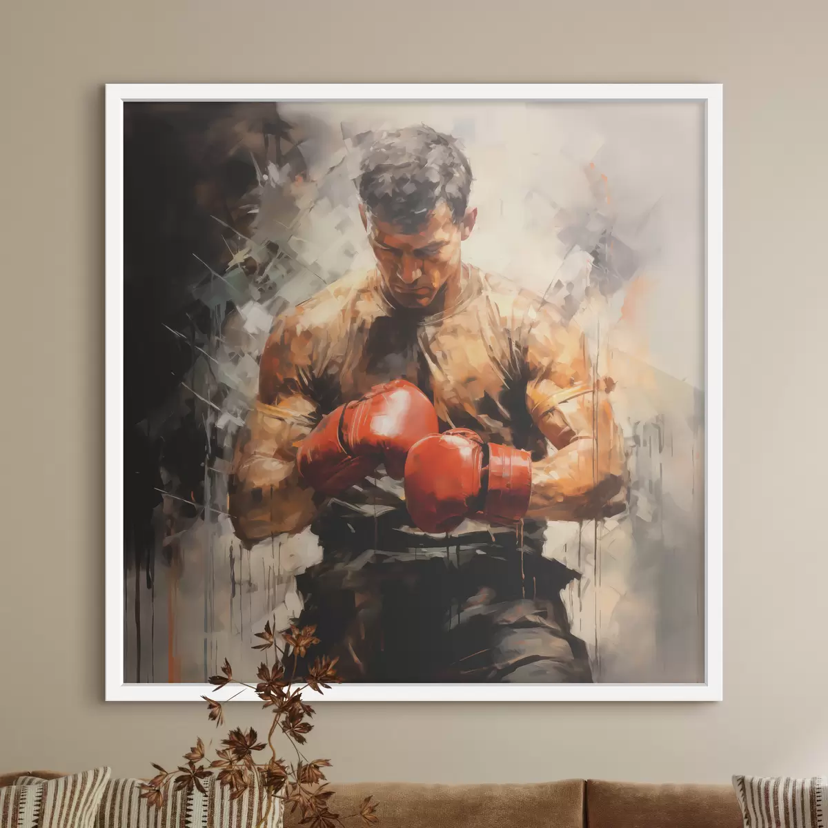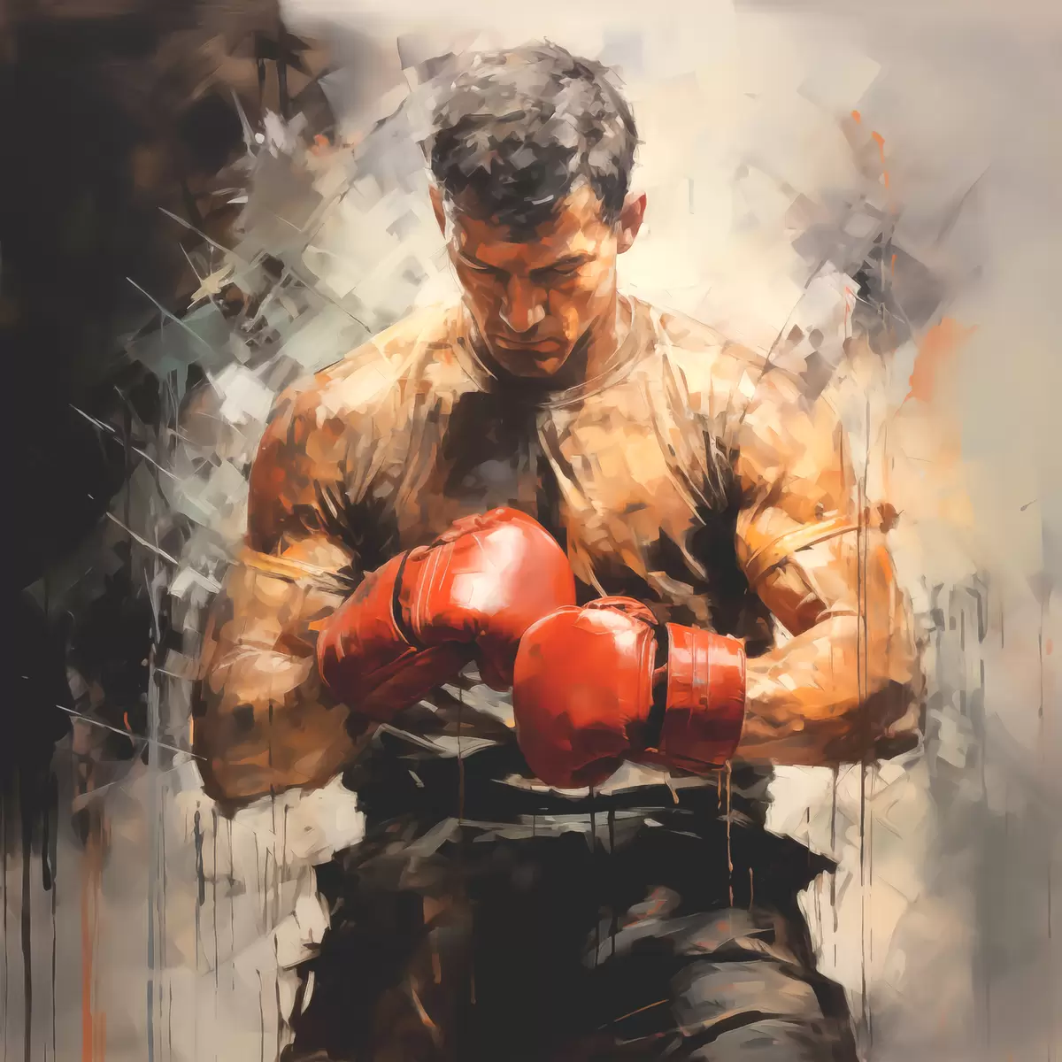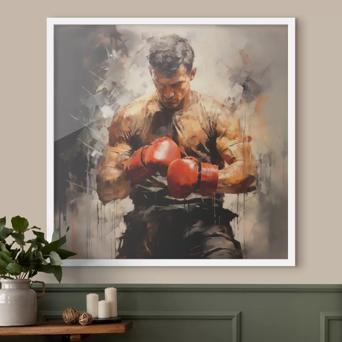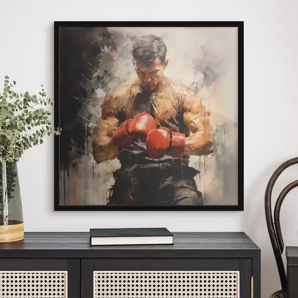 Poster Bokser in rode handschoenen olieverfschilderij Nr f39180