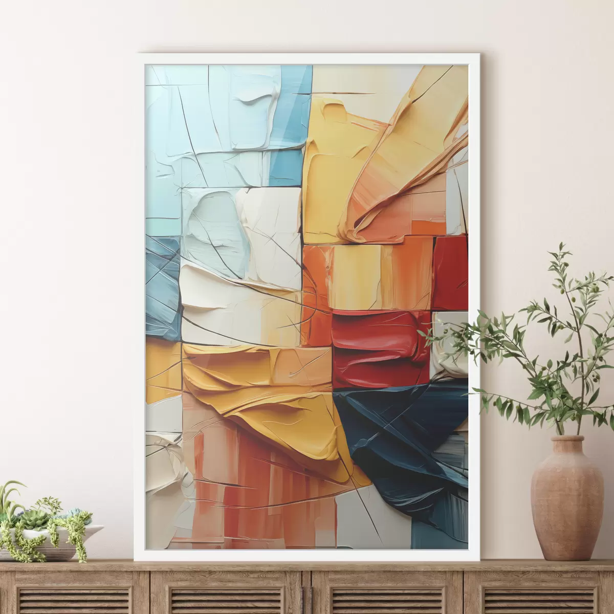 Poster Stukken heldere verf met scheuren, vierkanten, kubismeschilderij Nr f39196