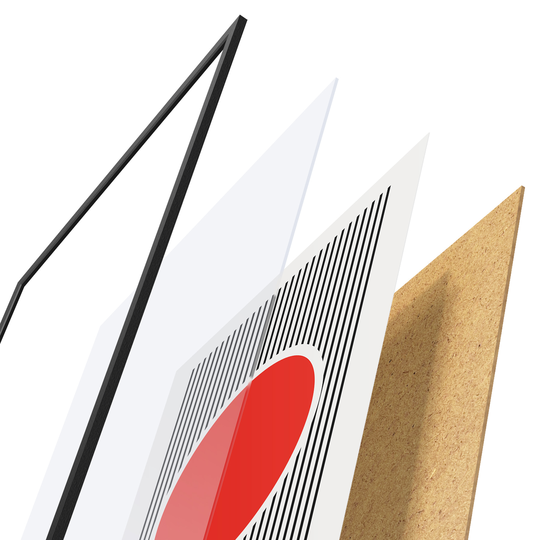 De poster bestaat uit een frame, plexiglas, geprinte afbeelding en spaanplaat achterkant. De poster kan meteen aan de muur worden gehangen dankzij de bevestigingen op de achterkant.
