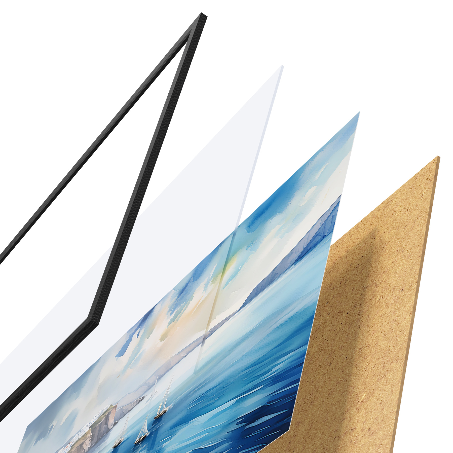 De poster bestaat uit een frame, plexiglas, geprinte afbeelding en spaanplaat achterkant. De poster kan meteen aan de muur worden gehangen dankzij de bevestigingen op de achterkant.