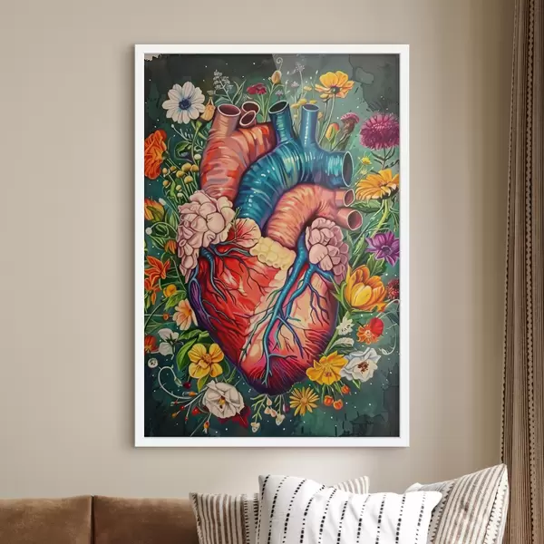 De poster bestaat uit een frame, plexiglas, geprinte afbeelding en spaanplaat achterkant. De poster kan meteen aan de muur worden gehangen dankzij de bevestigingen op de achterkant.
