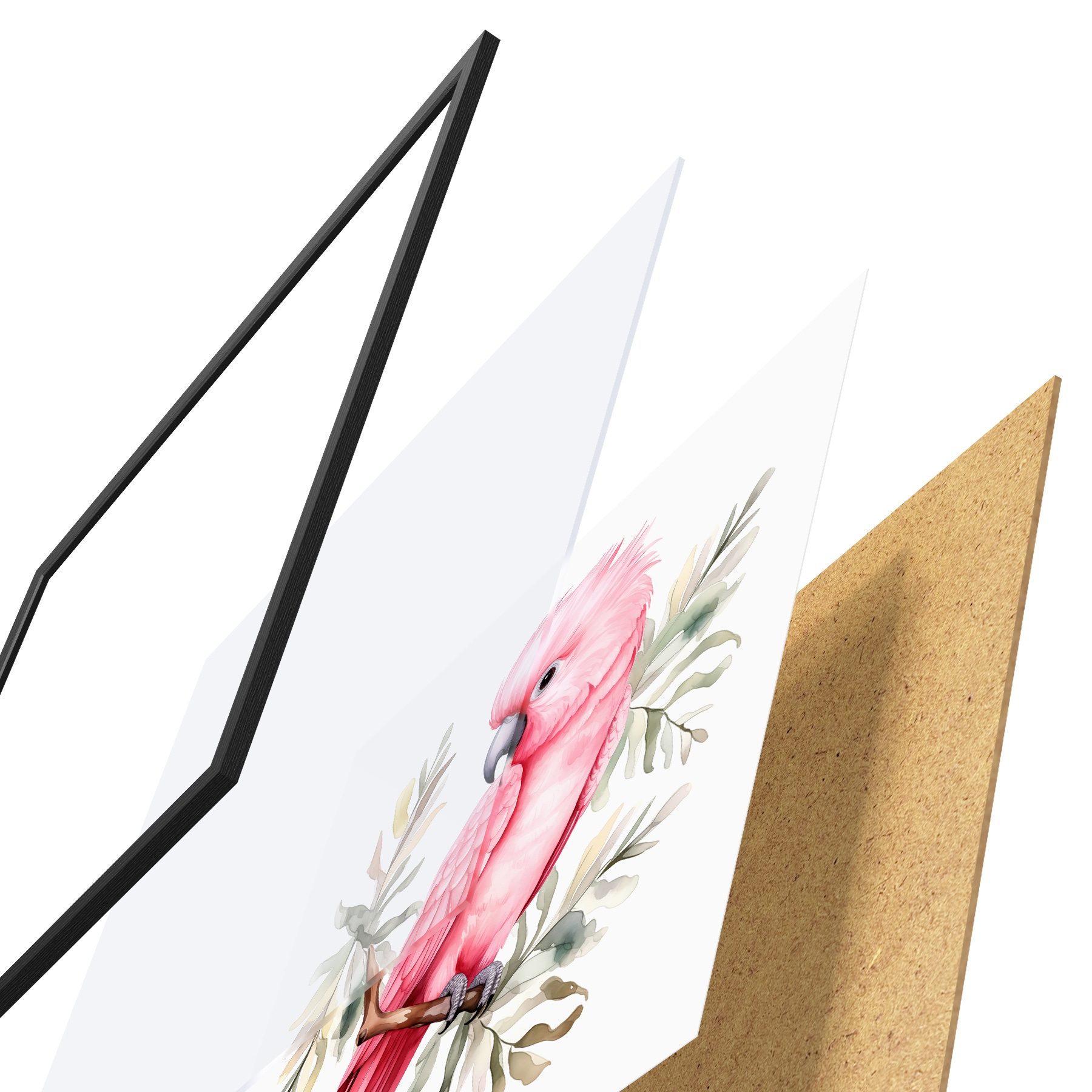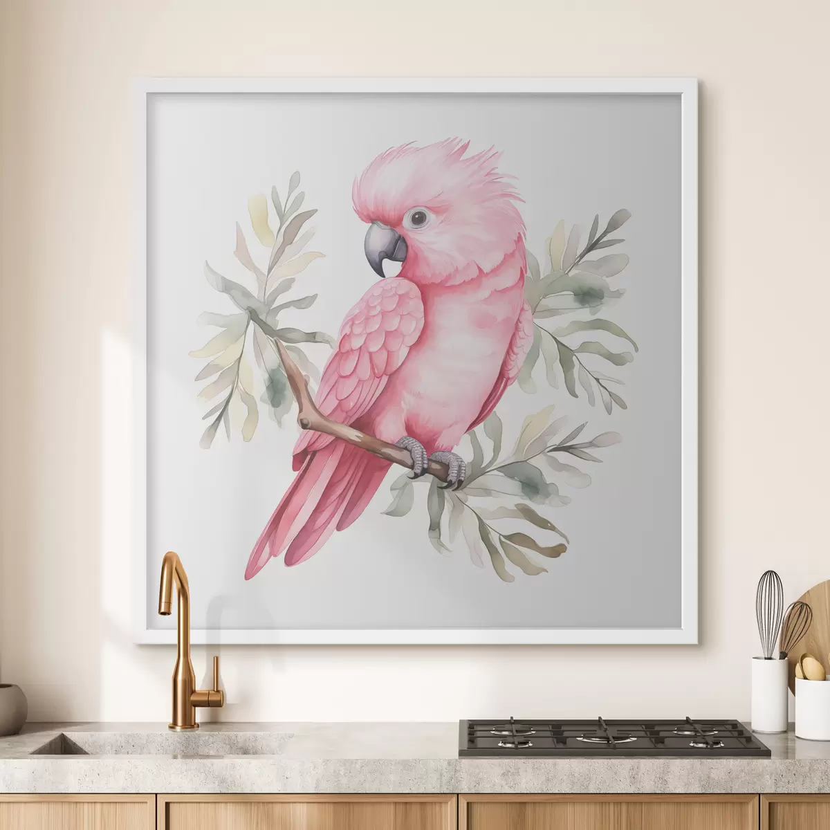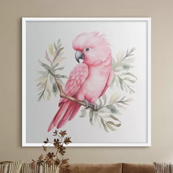 Poster Een roze kaketoe papegaai zit op een aquarel tak Nr f39334