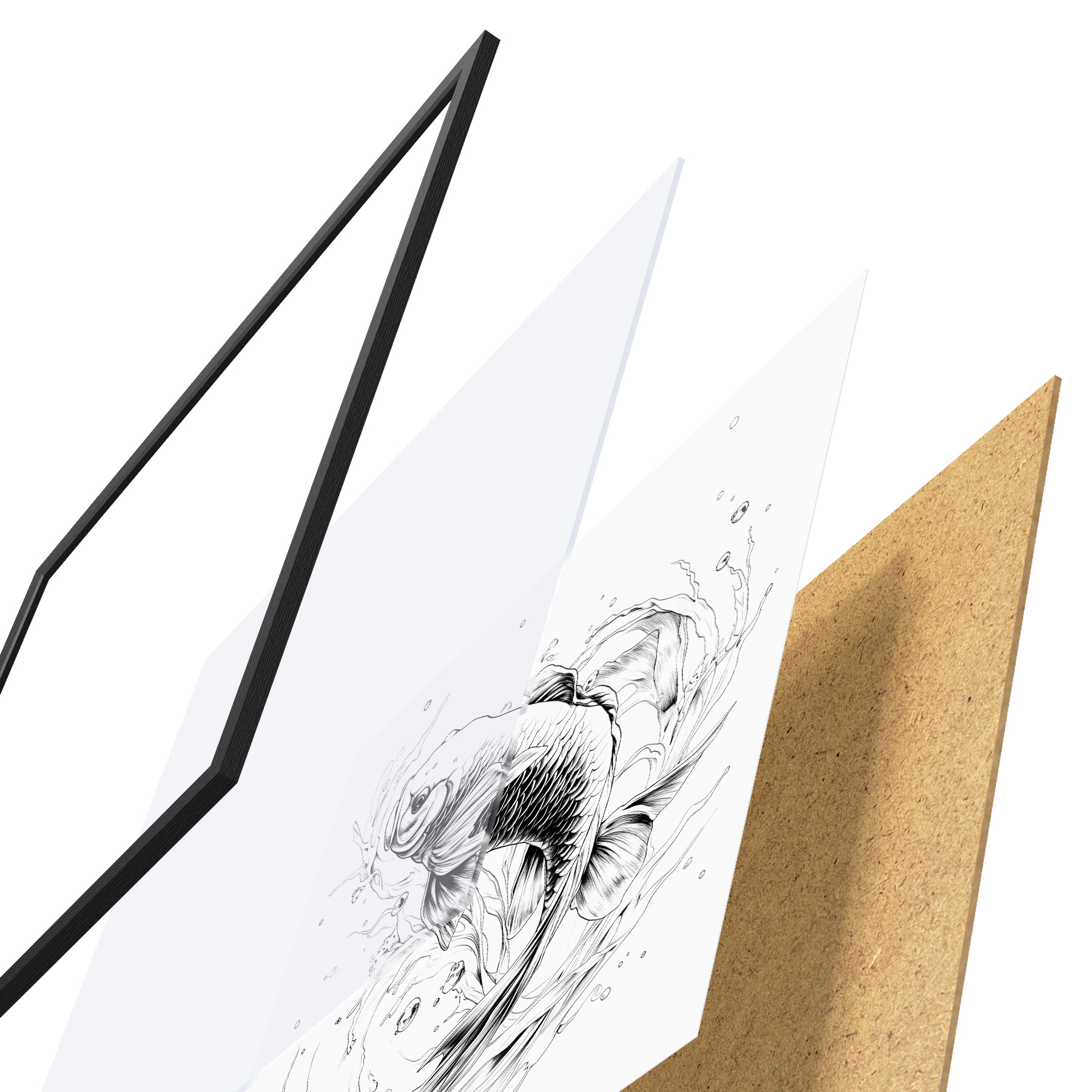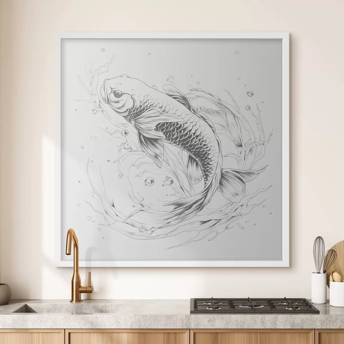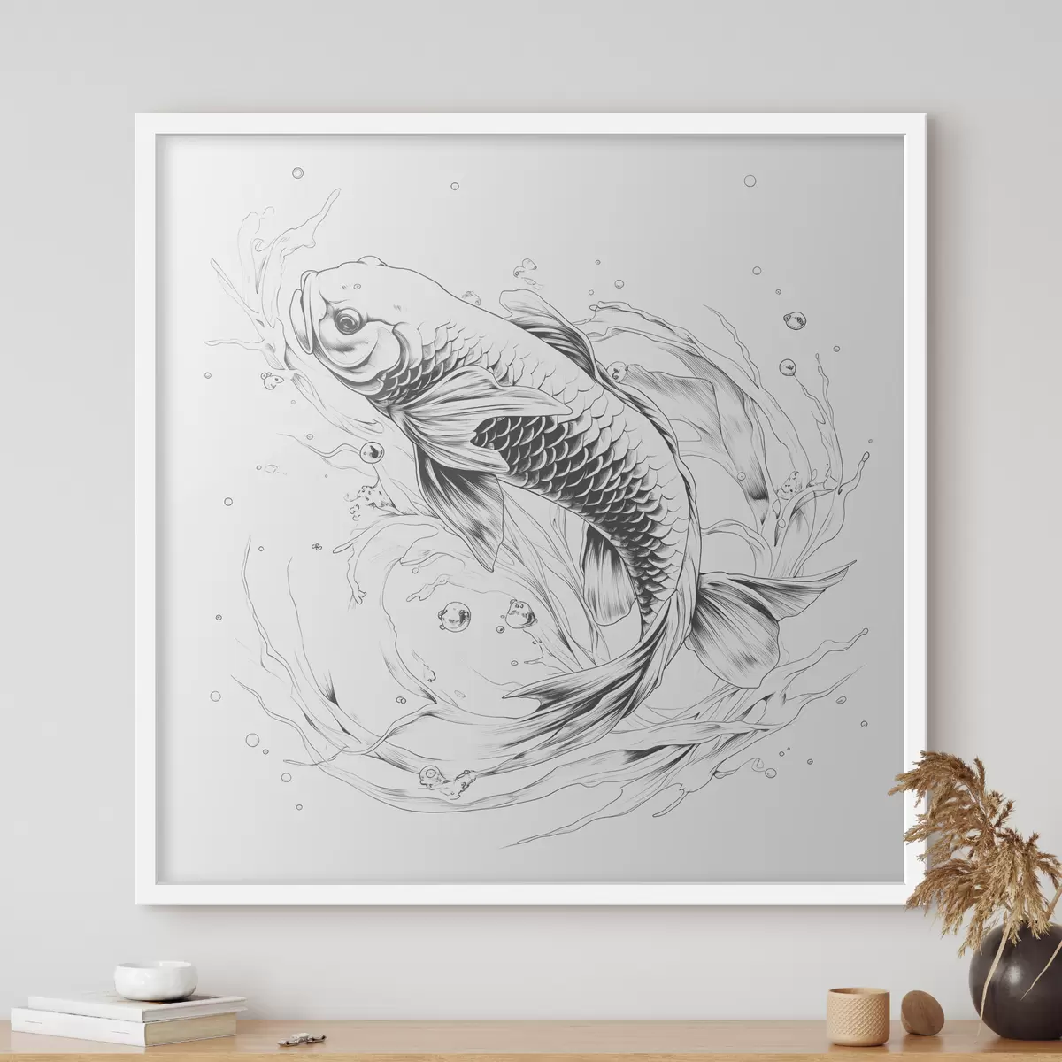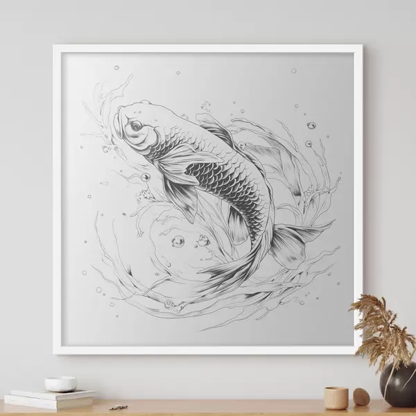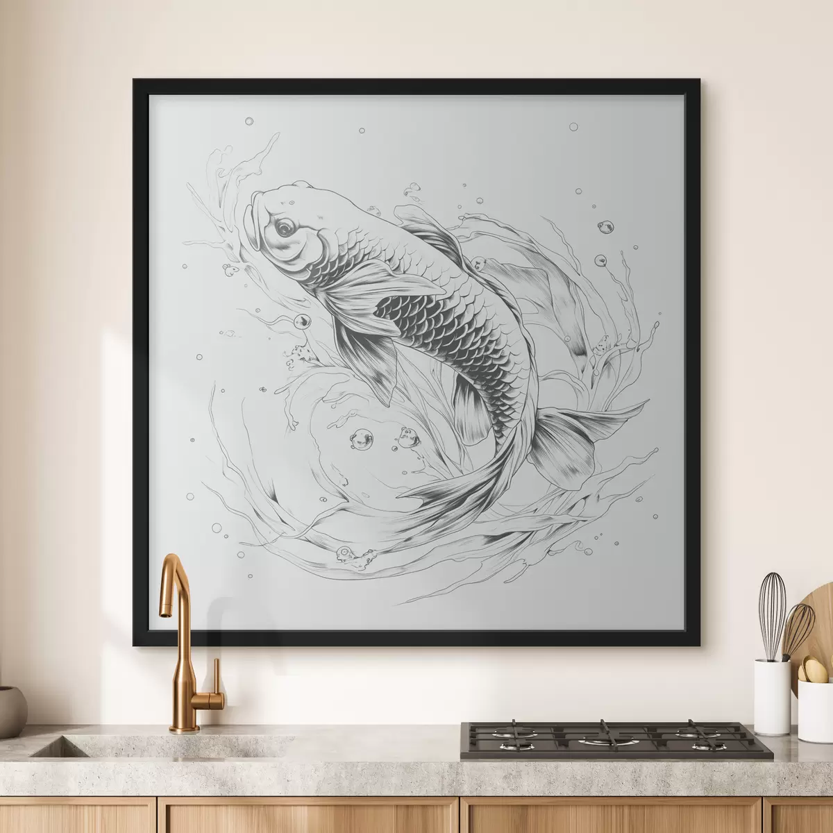 Poster Monochrome lijntekening van Koi vissen Nr f39433