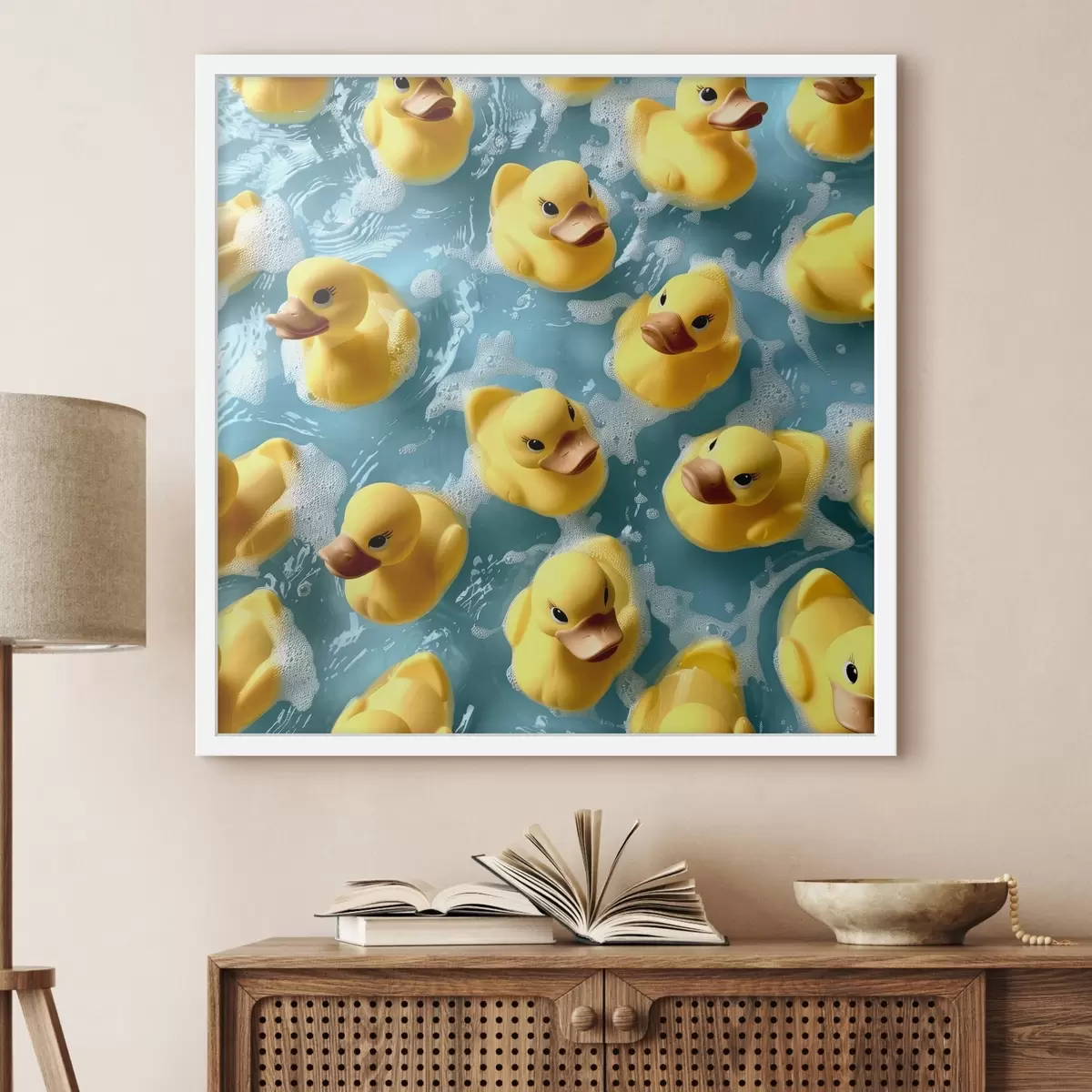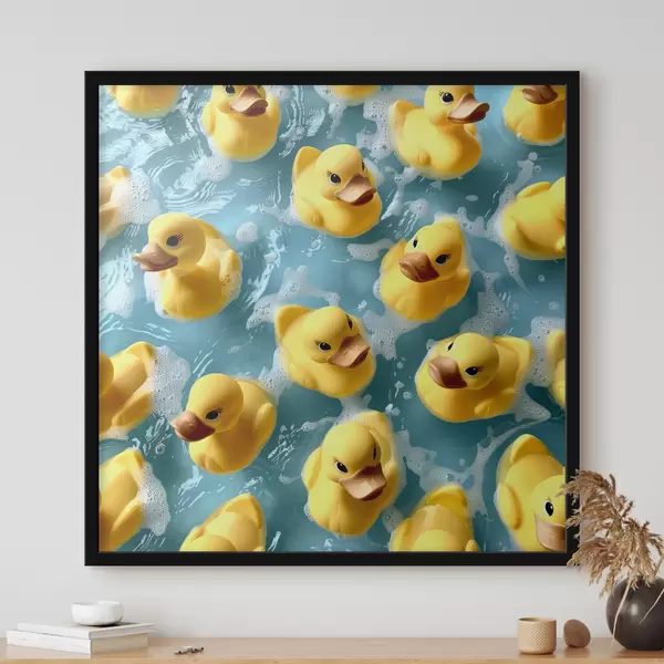Poster Realistische badeendjes die in het water drijven Nr f39469
