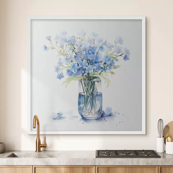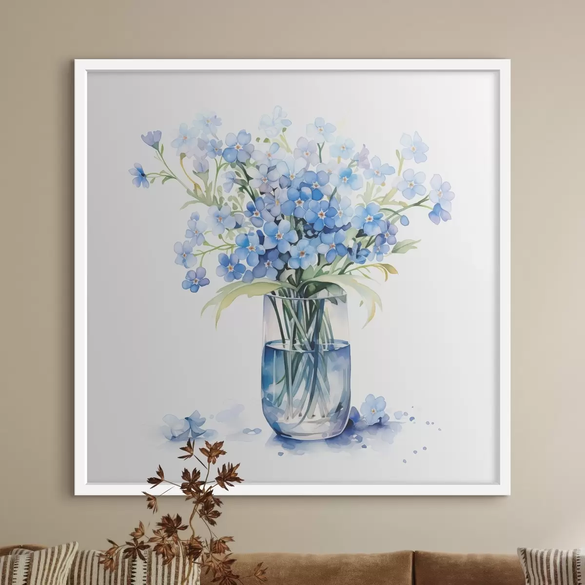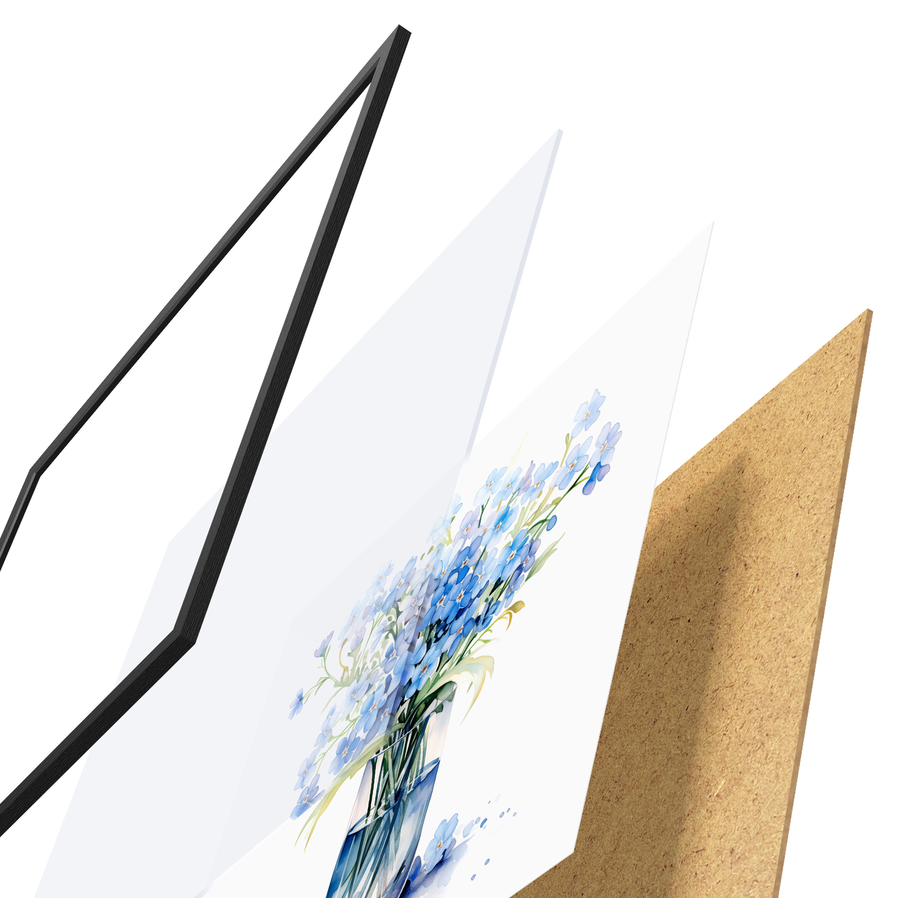 Poster Een boeket blauwe bloemen in transparante aquarel in een vaas Nr f39564