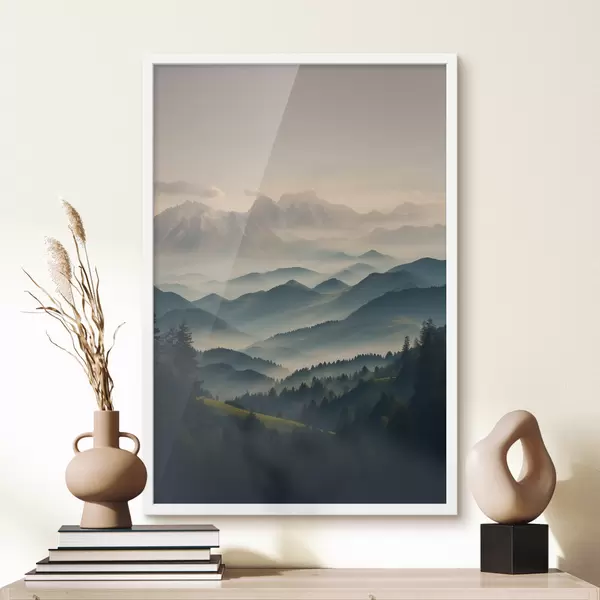 Poster Uitzicht op mistige bergen Nr f39596