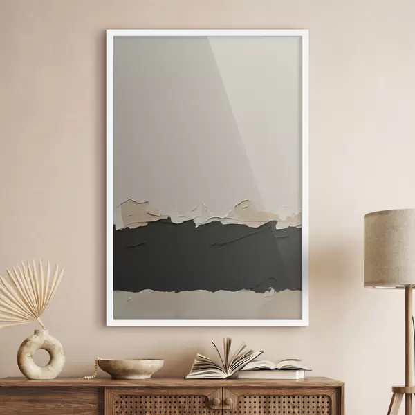 Poster Abstract schilderij met witte en zwarte kleuren Nr f39609