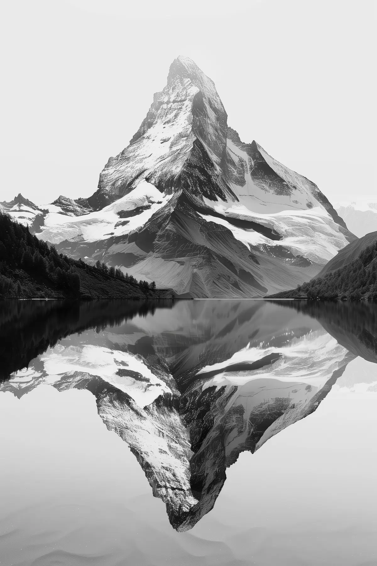 Poster Zwart-wit foto van een berg in minimalistische stijl Nr f39638