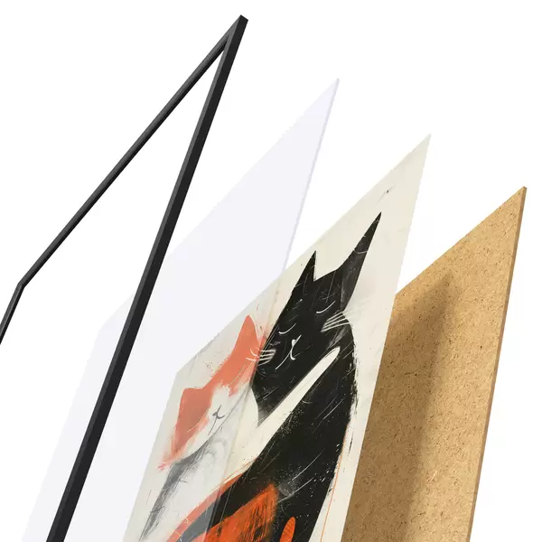De poster bestaat uit een frame, plexiglas, geprinte afbeelding en spaanplaat achterkant. De poster kan meteen aan de muur worden gehangen dankzij de bevestigingen op de achterkant.