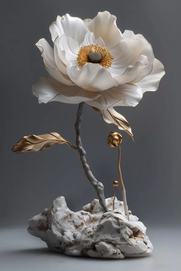 Poster Sierlijke witte lotus bloeiend uit steen Nr f39765