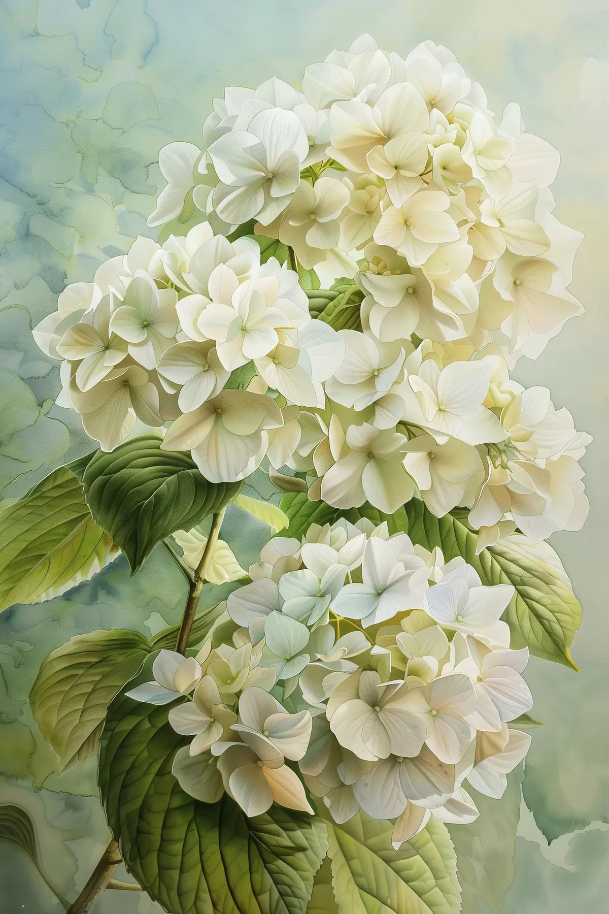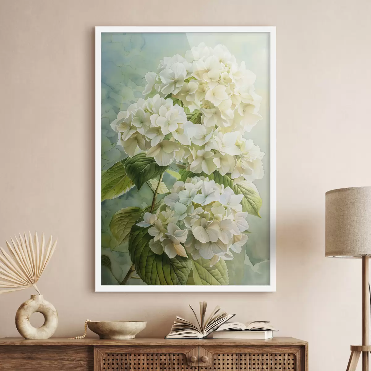 Poster Hortensia bloem, bloemen, zachte natuurlijke kleuren, aquareltekening Nr f39782