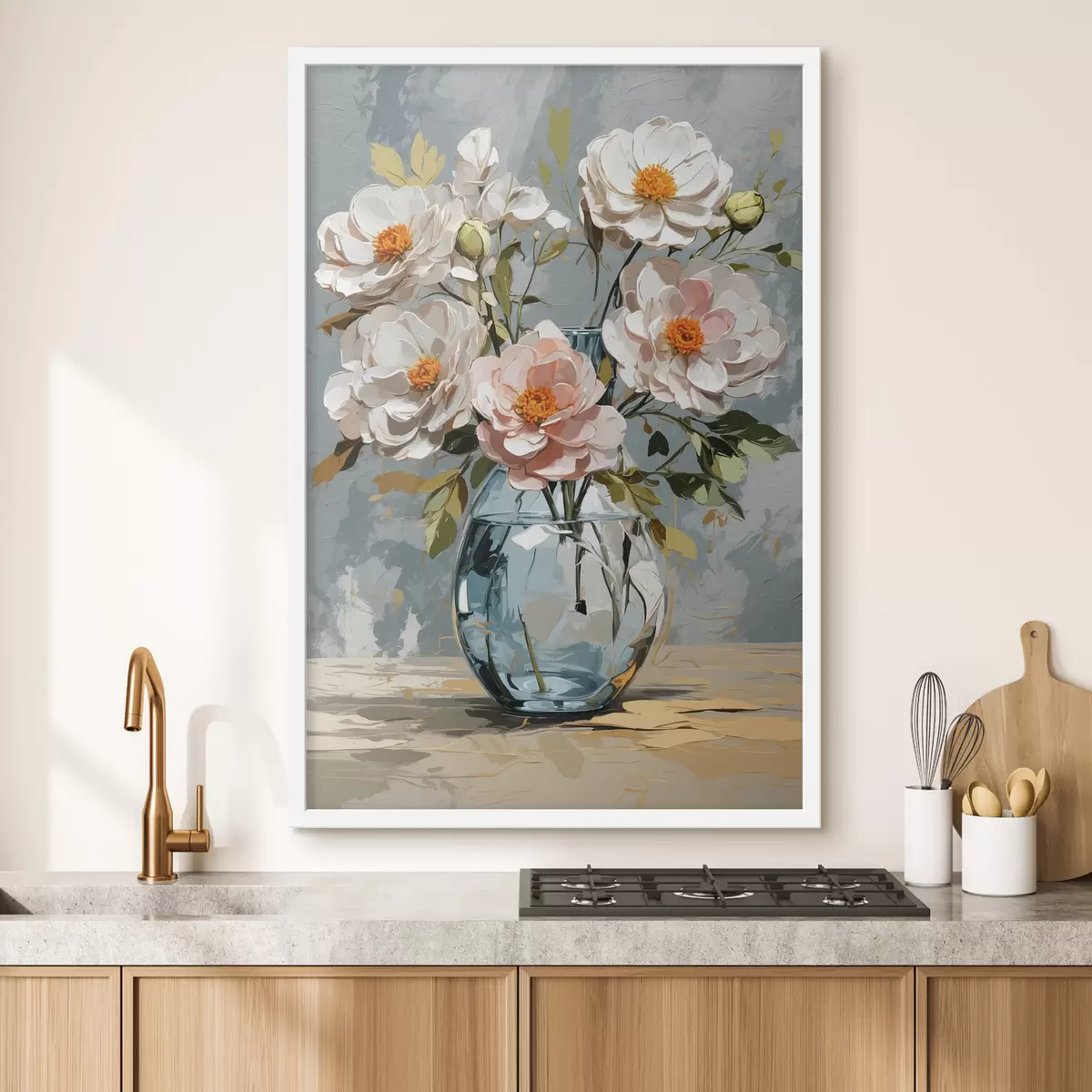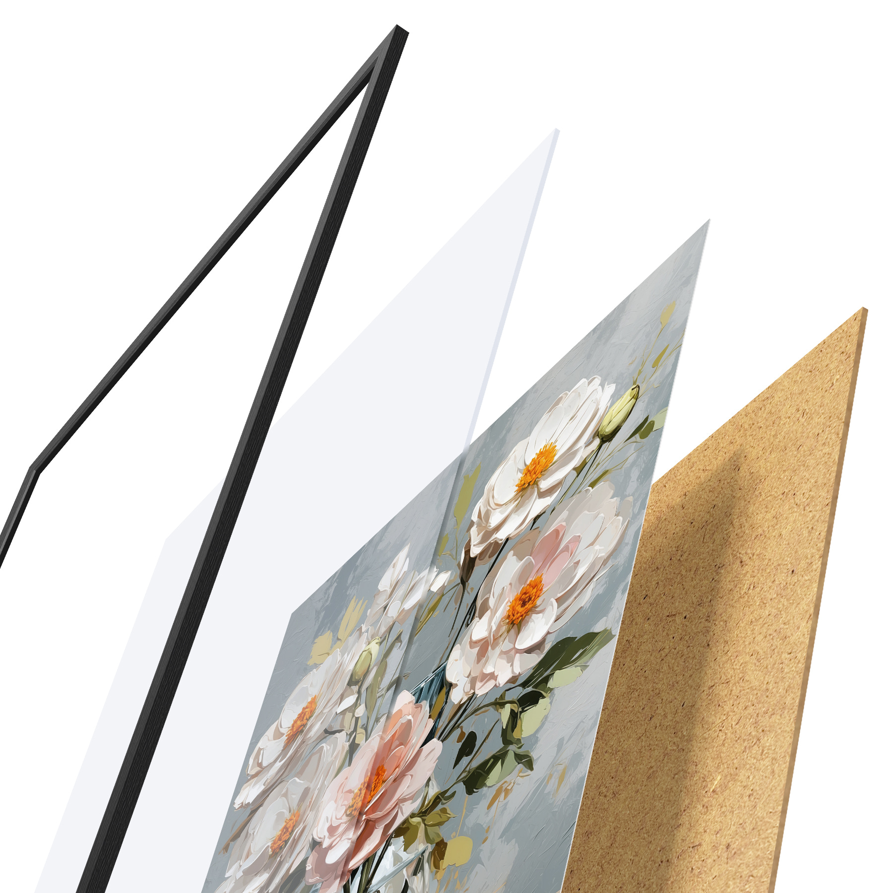 De poster bestaat uit een frame, plexiglas, geprinte afbeelding en spaanplaat achterkant. De poster kan meteen aan de muur worden gehangen dankzij de bevestigingen op de achterkant.