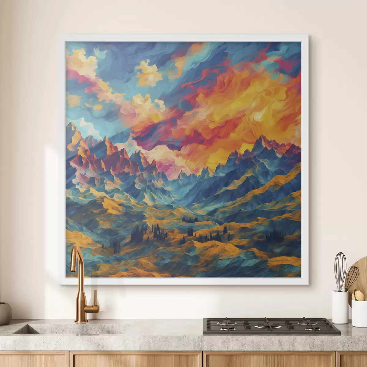 Je kunt het schilderij ophangen aan schroeven. Hiervoor leveren we bevestigingen bij onze foto's, zodat je de foto gemakkelijk kunt ophangen.
