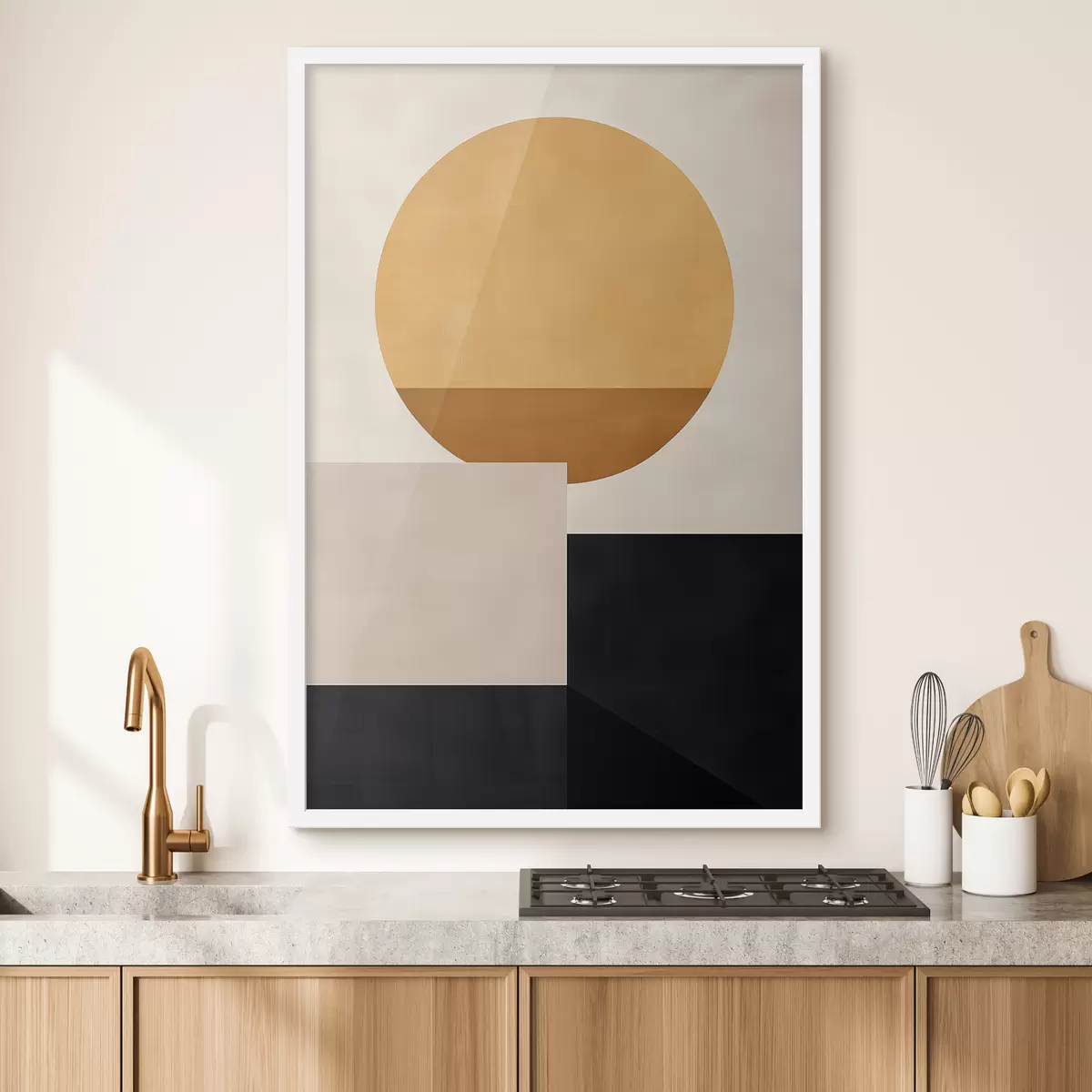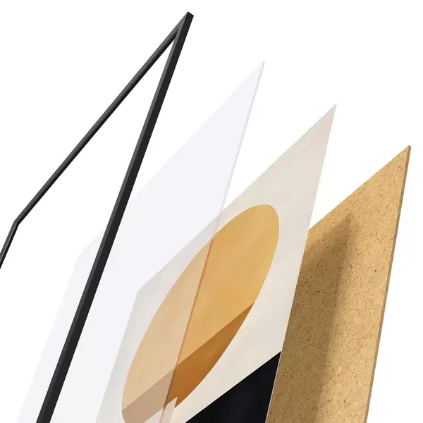 De poster bestaat uit een frame, plexiglas, geprinte afbeelding en spaanplaat achterkant. De poster kan meteen aan de muur worden gehangen dankzij de bevestigingen op de achterkant.