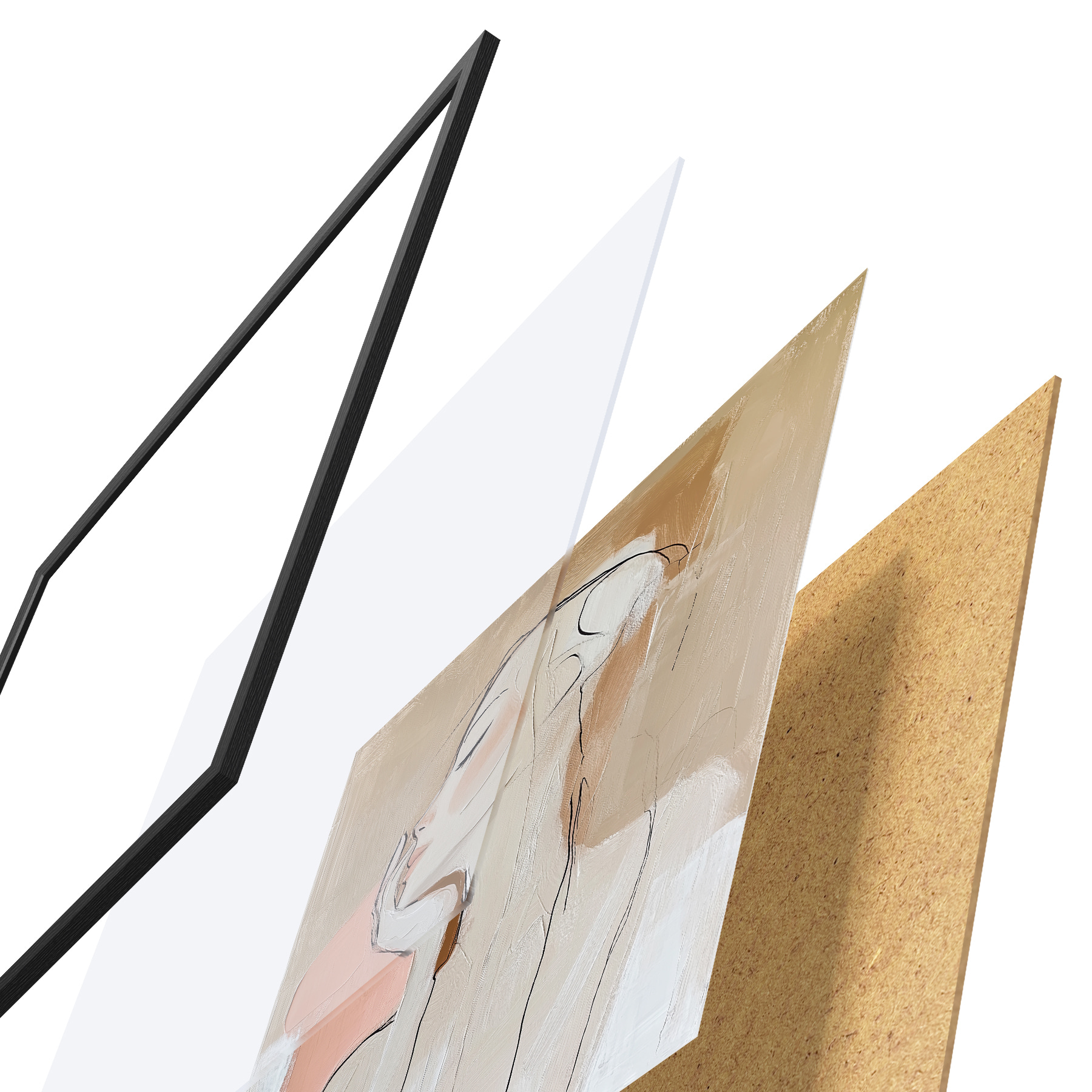 De poster bestaat uit een frame, plexiglas, geprinte afbeelding en spaanplaat achterkant. De poster kan meteen aan de muur worden gehangen dankzij de bevestigingen op de achterkant.