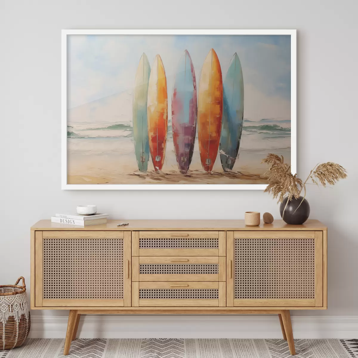 Je kunt het schilderij ophangen aan schroeven. Hiervoor leveren we bevestigingen bij onze foto's, zodat je de foto gemakkelijk kunt ophangen.