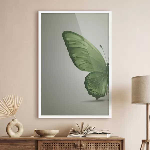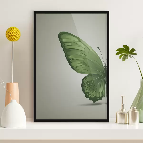 Poster Linkervleugel van groene vlinder op witte achtergrond Nr f40062