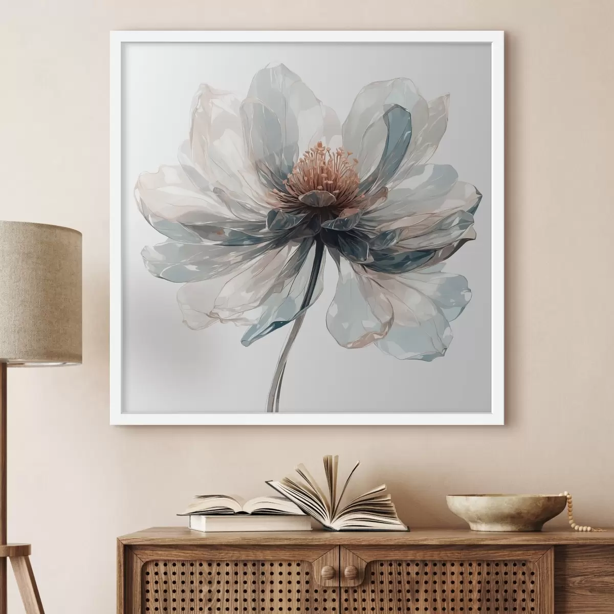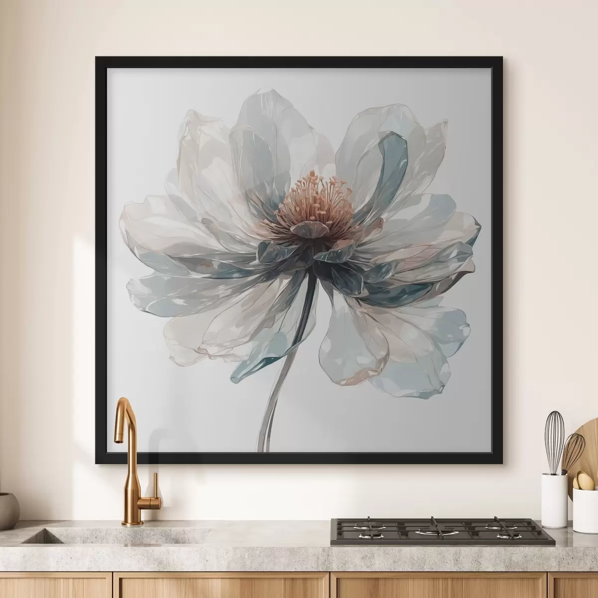 Poster Transparante blauwe bloem op witte achtergrond Nr f40067