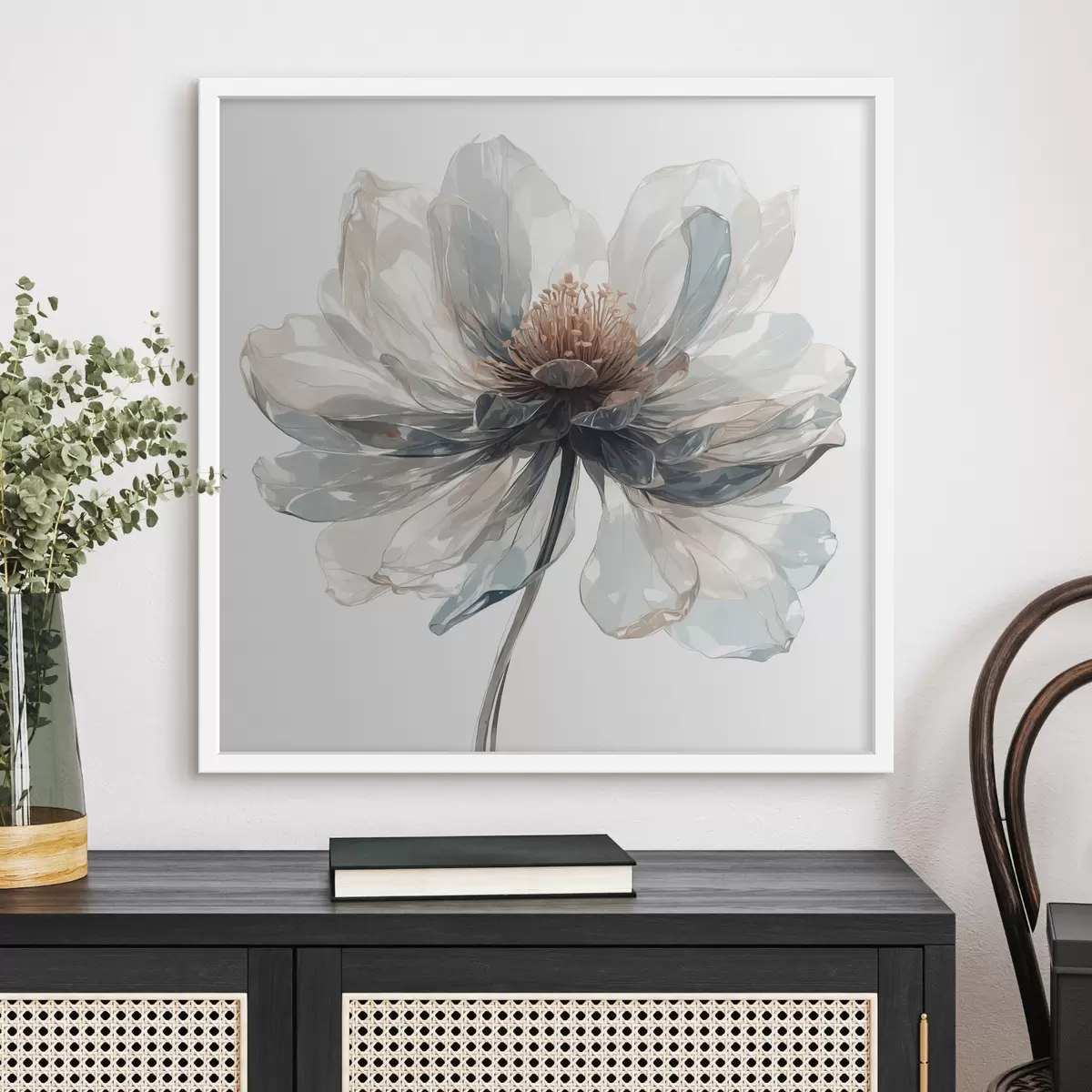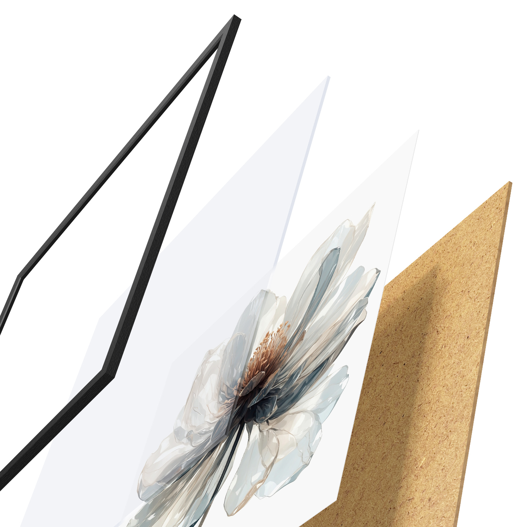 Poster Transparante blauwe bloem op witte achtergrond f40067