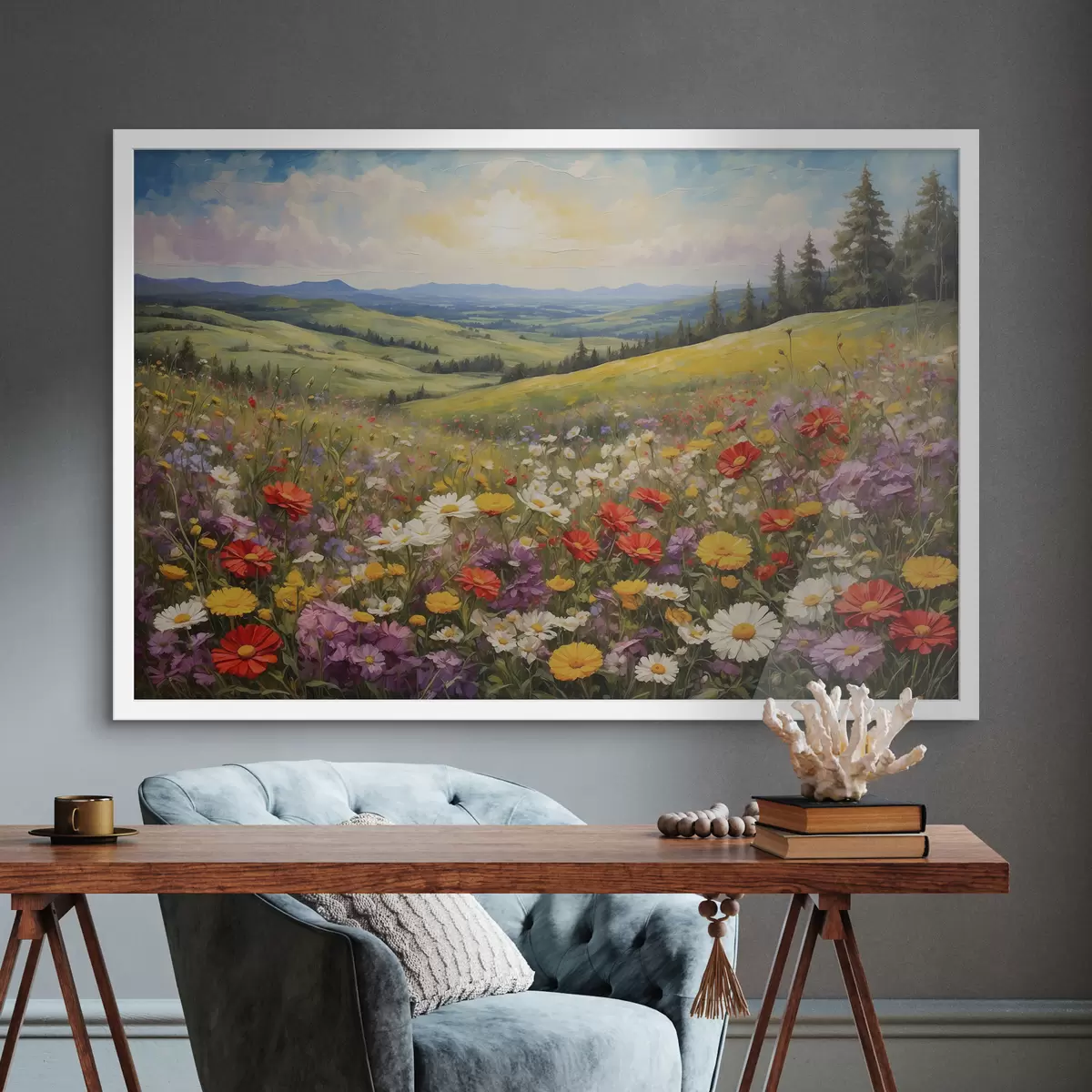 Poster Bloemenveld bij zonsondergang Nr f40073