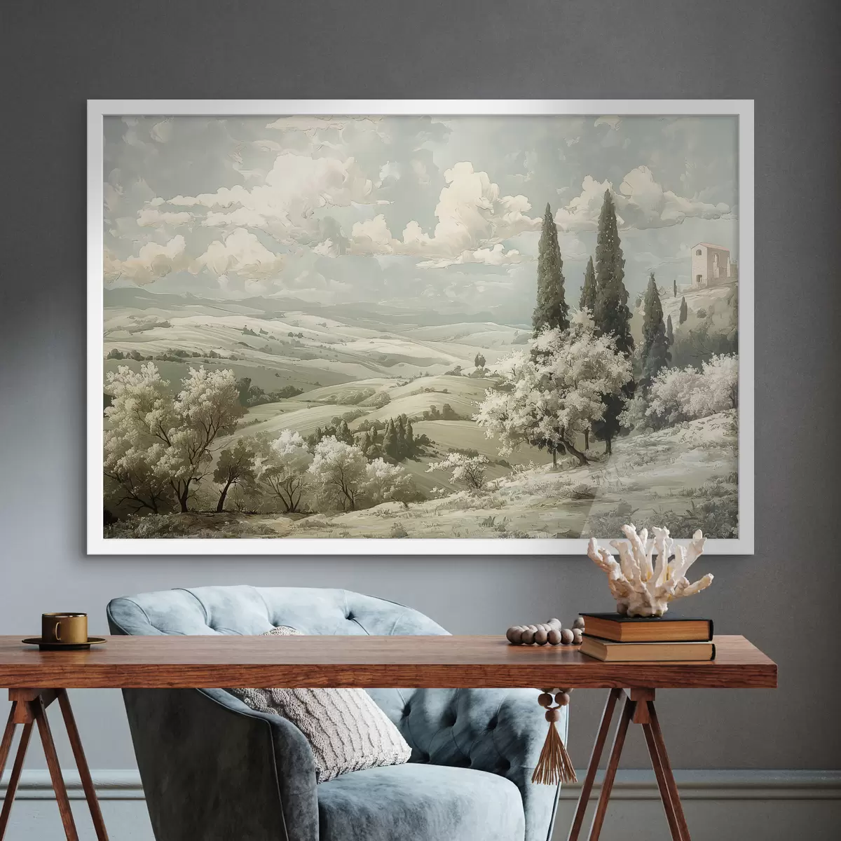 Je kunt het schilderij ophangen aan schroeven. Hiervoor leveren we bevestigingen bij onze foto's, zodat je de foto gemakkelijk kunt ophangen.