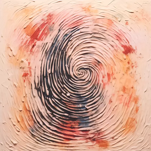 Poster Vingerafdruk in verf, beige, rood, oranje, geel, zwart Nr f40105