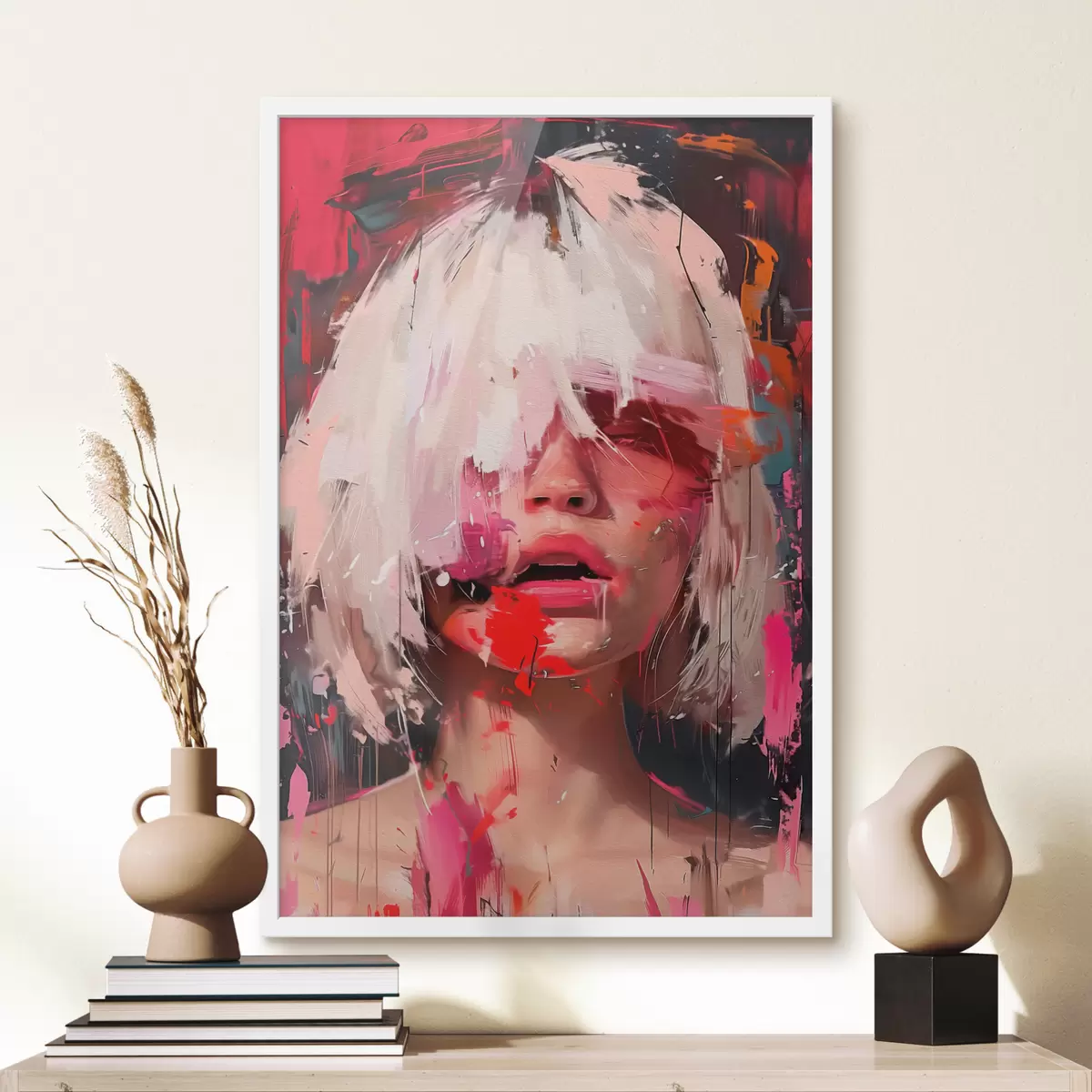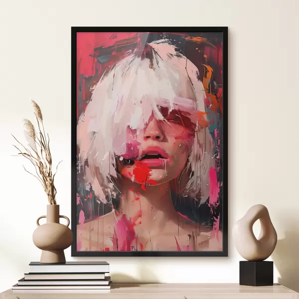 Poster Blond meisje met een vierkante bob en gekleurde verf Nr f40110