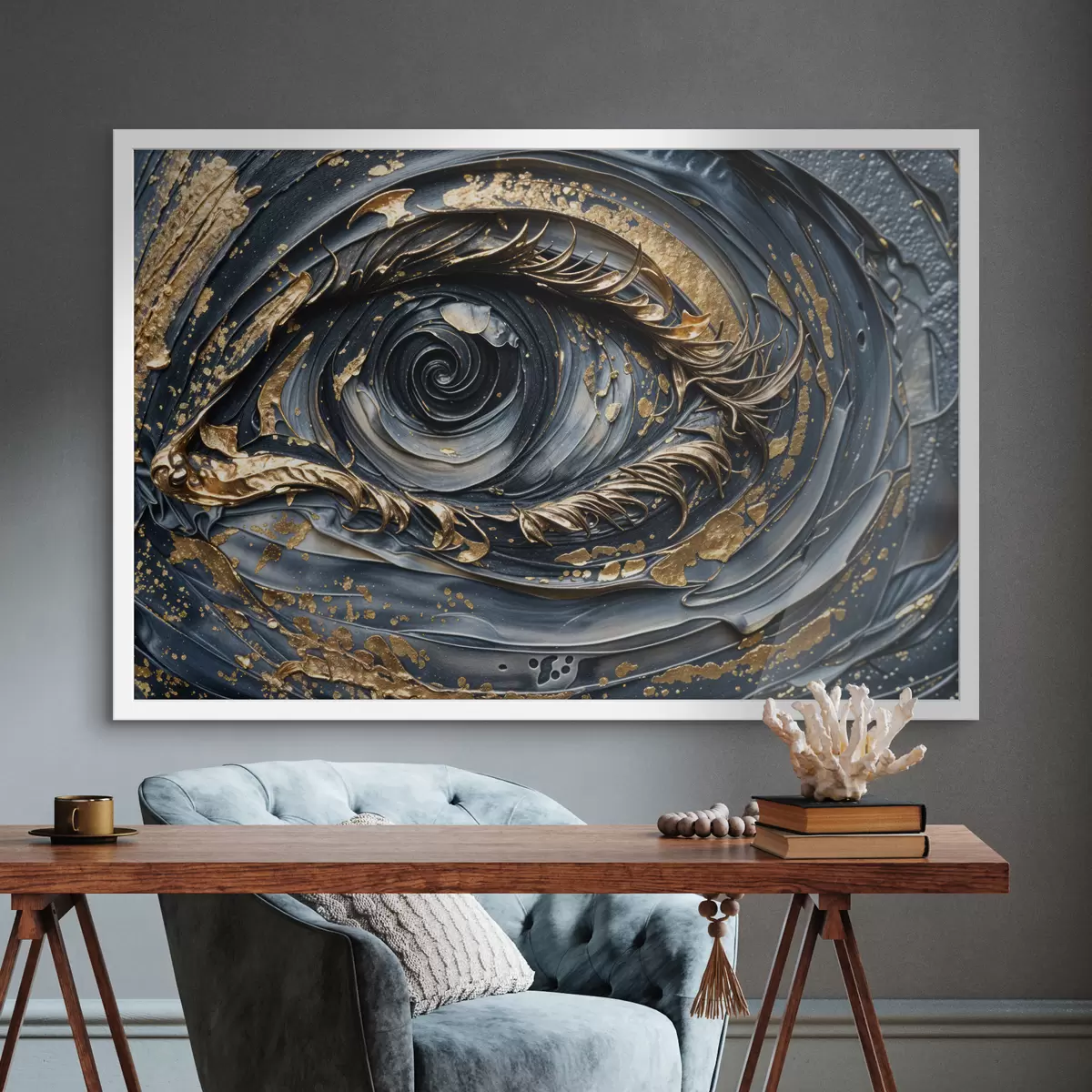 Poster Abstracte kunst close-up van het oog, met ingewikkelde wervelende patronen en texturen Nr f40175