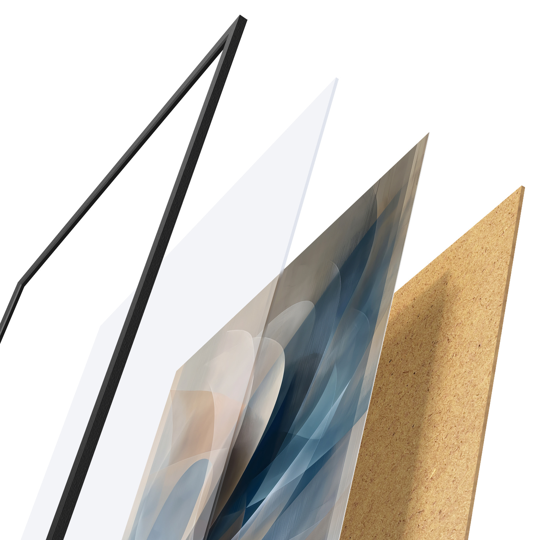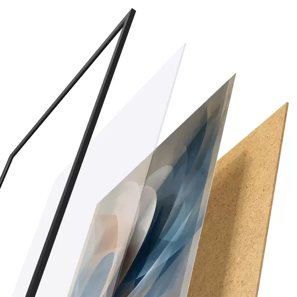 De poster bestaat uit een frame, plexiglas, geprinte afbeelding en spaanplaat achterkant. De poster kan meteen aan de muur worden gehangen dankzij de bevestigingen op de achterkant.