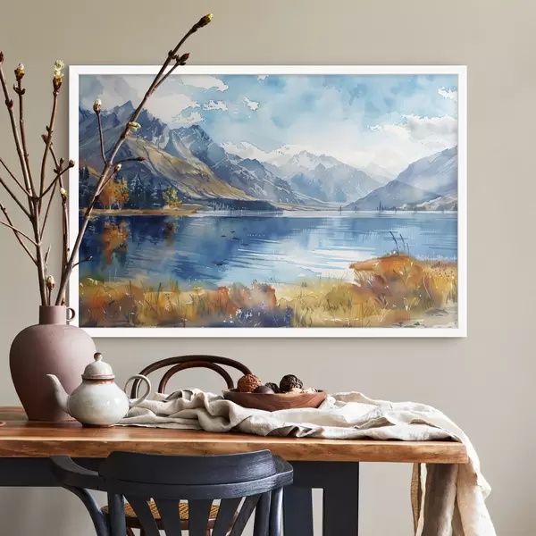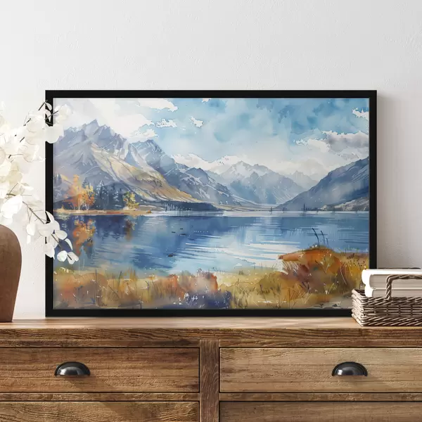 Poster Aquarel bergen landschap, herfstkleuren Nr f40308