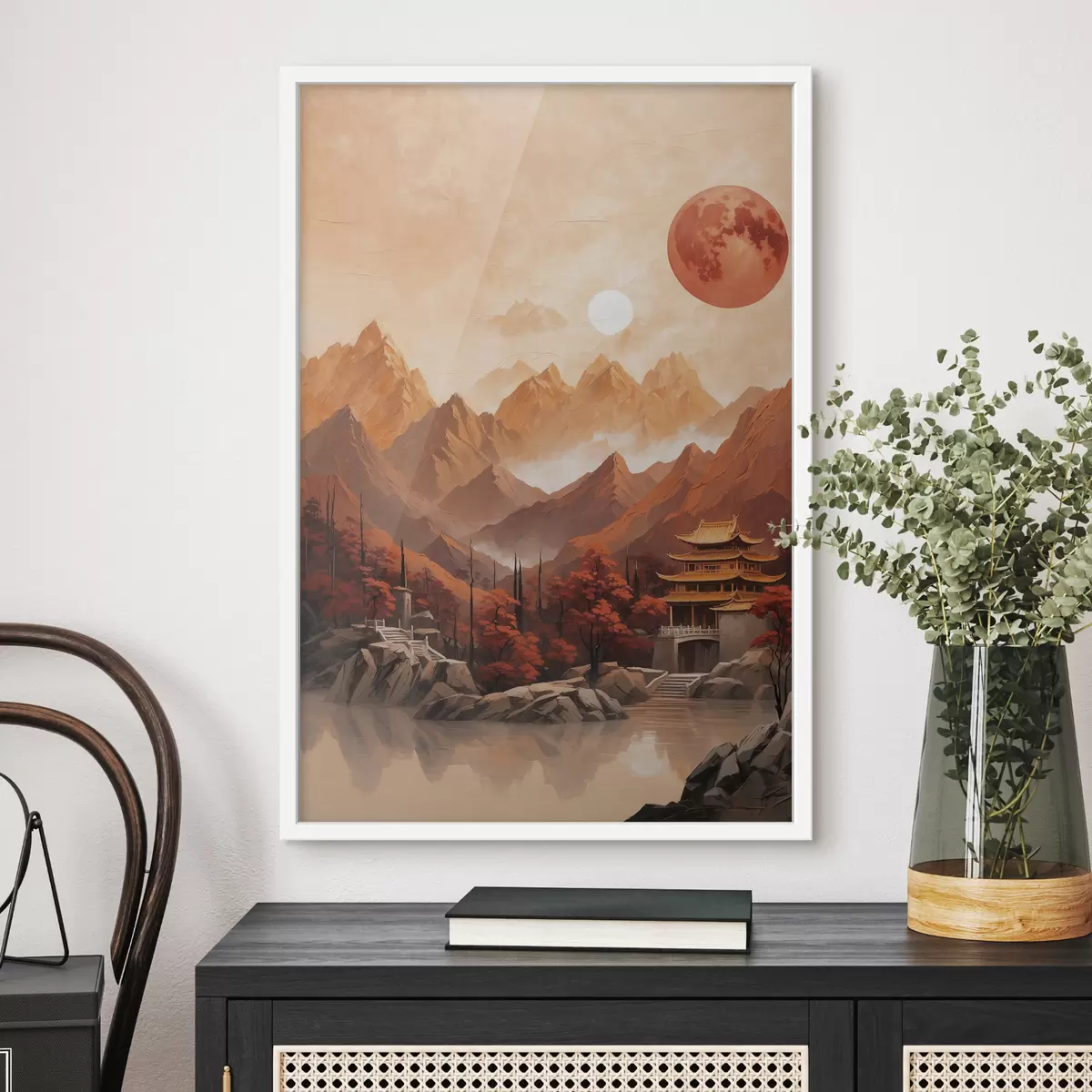 Poster Chinees historisch gebouw in de bergen Nr f40330