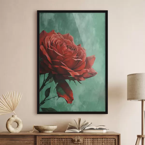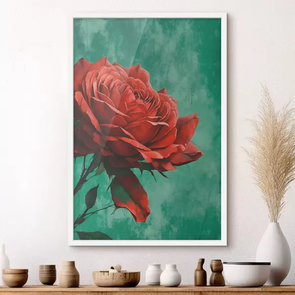 Poster Roos op groene achtergrond Nr f40339