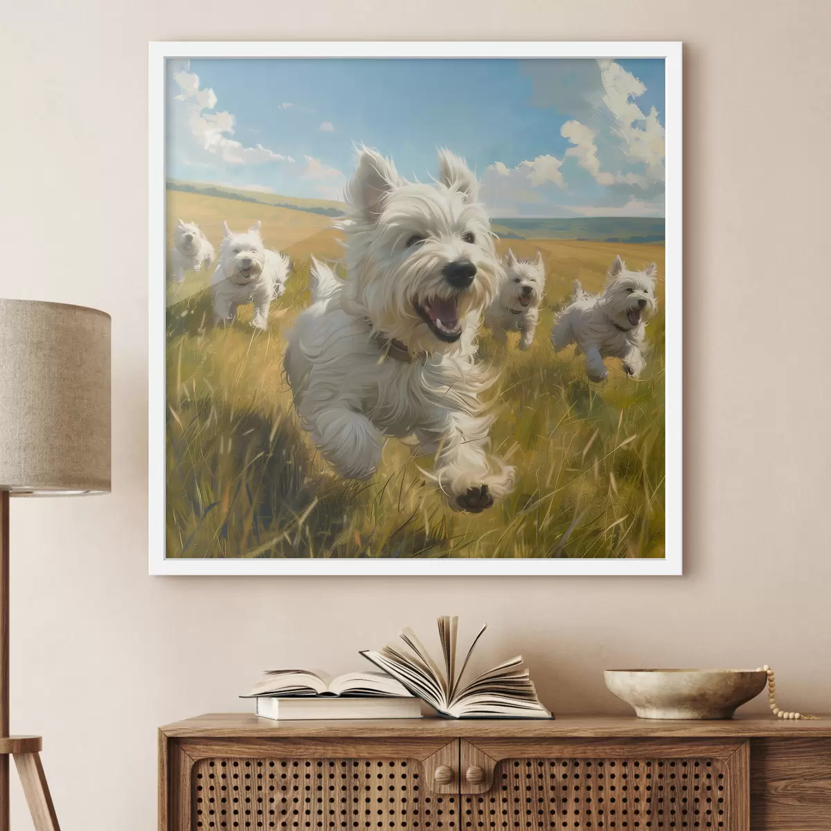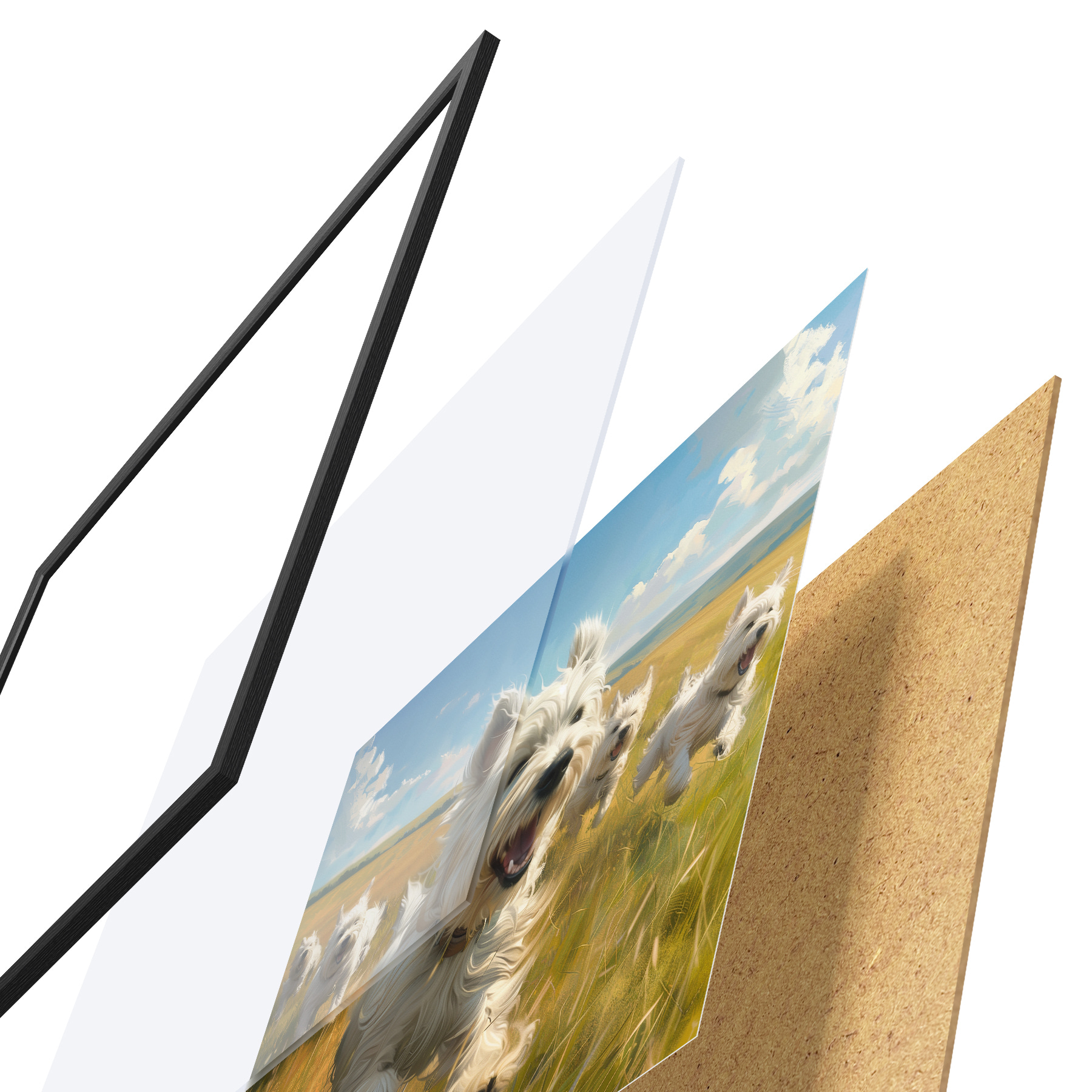 De poster bestaat uit een frame, plexiglas, geprinte afbeelding en spaanplaat achterkant. De poster kan meteen aan de muur worden gehangen dankzij de bevestigingen op de achterkant.