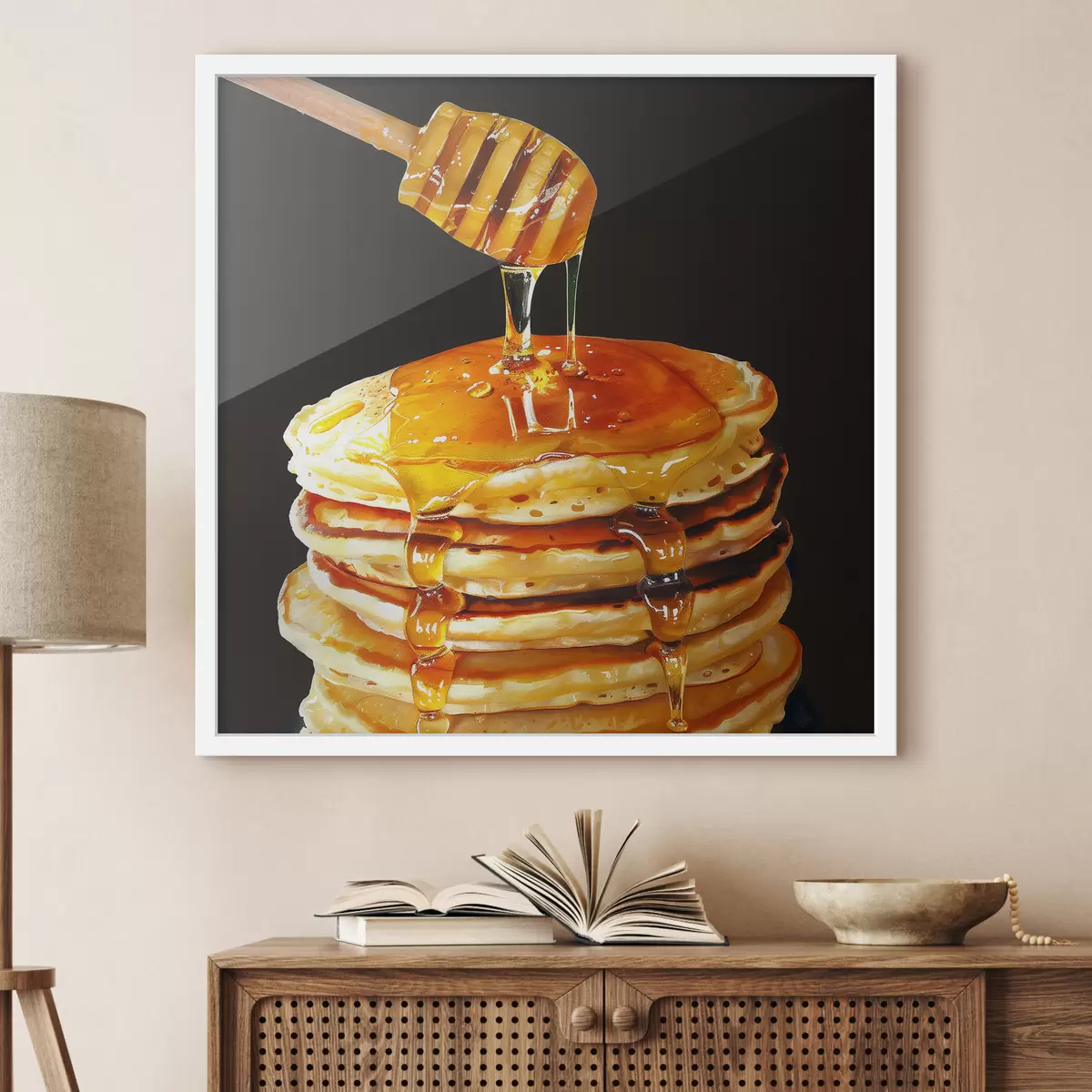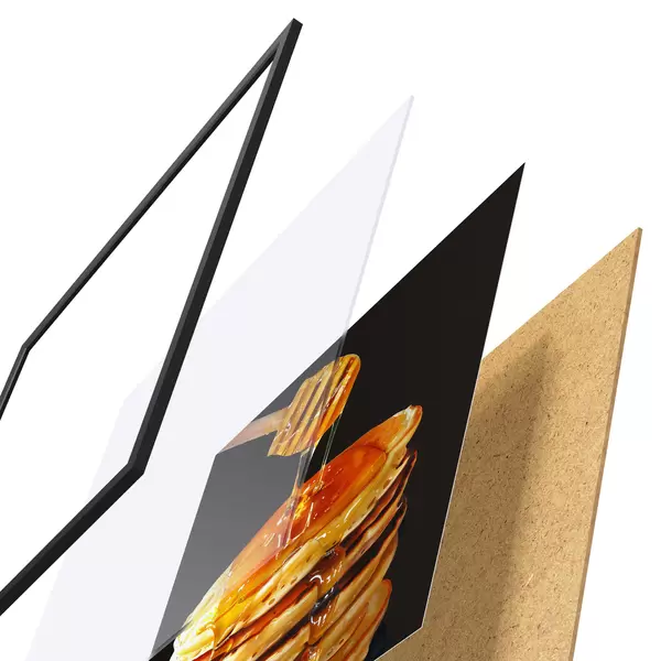 De poster bestaat uit een frame, plexiglas, geprinte afbeelding en spaanplaat achterkant. De poster kan meteen aan de muur worden gehangen dankzij de bevestigingen op de achterkant.