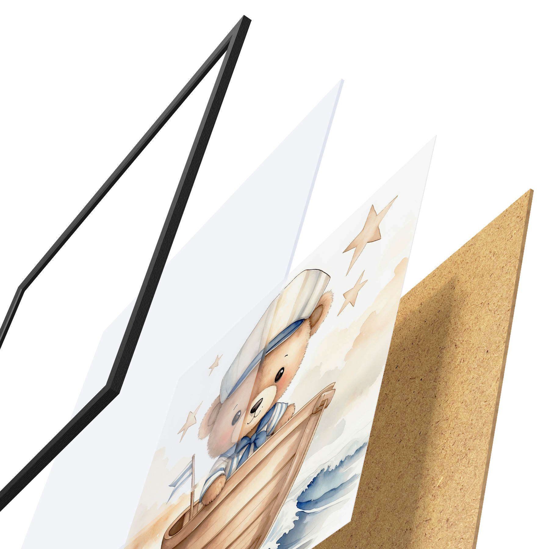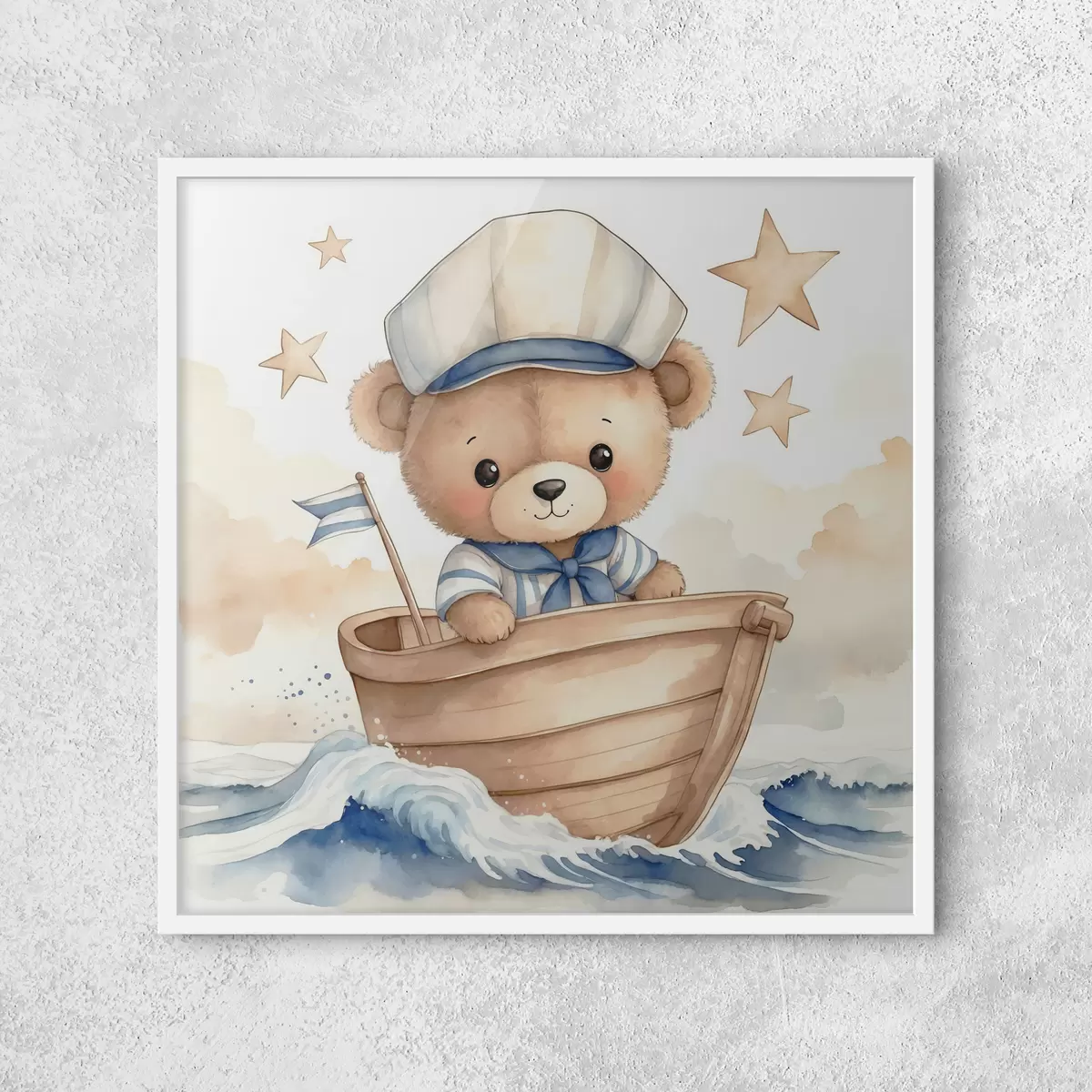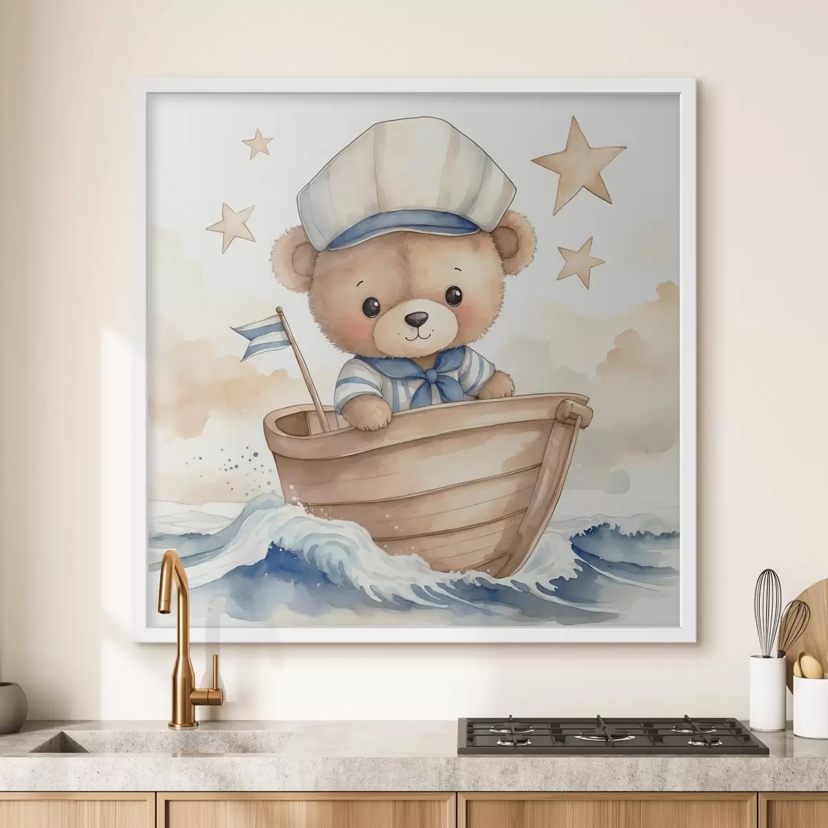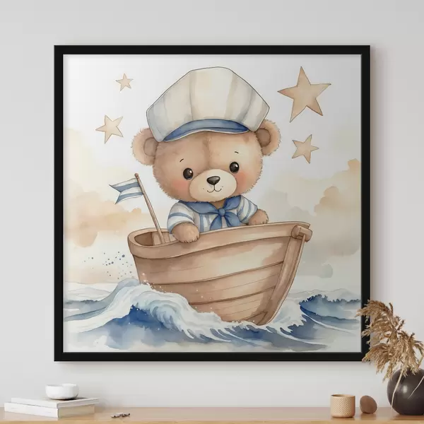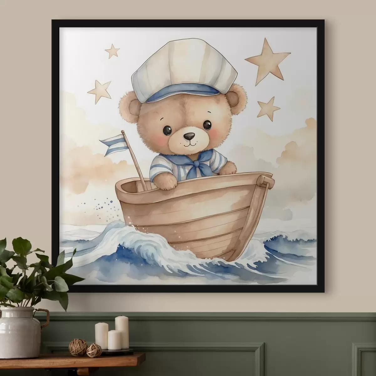 Poster Schattige aquarel teddybeer in een boot Nr f40428