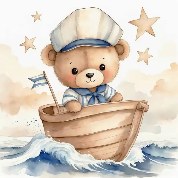 Poster Schattige aquarel teddybeer in een boot Nr f40428