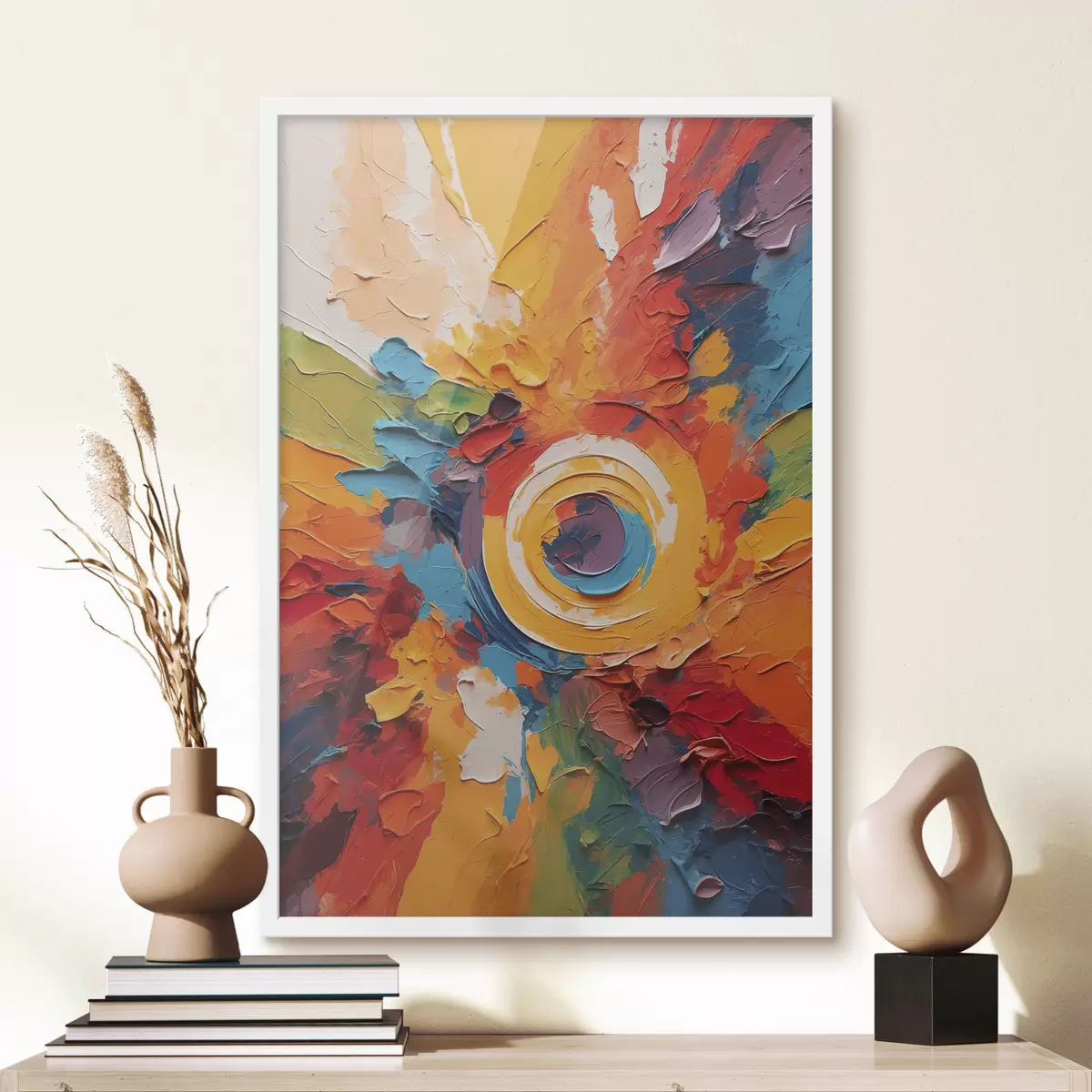 Poster Abstract olieverfschilderij met cirkel in het midden f40458