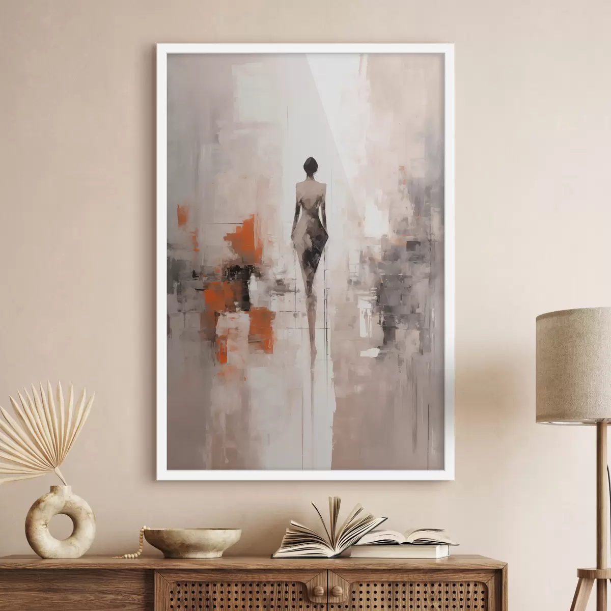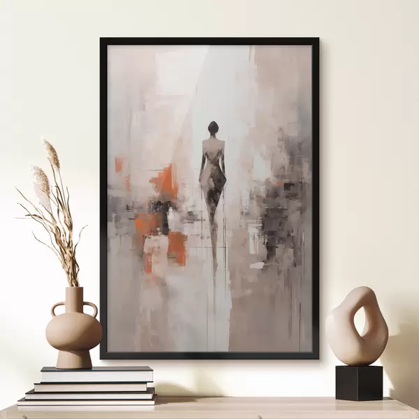 Poster Abstract silhouet van een vrouw, imitatie van schaafwonden en penseelstreken Nr f40485