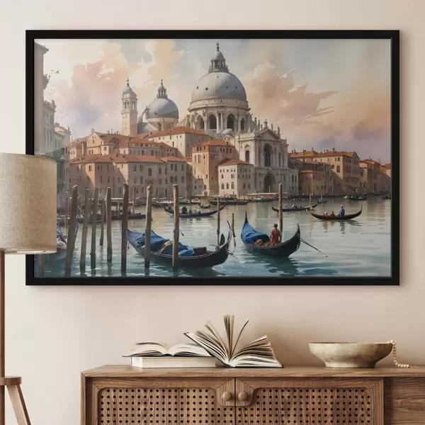 Poster Een schilderachtig aquarelschilderij met uitzicht op het Canal Grande in Venetië, Italië Nr f40573