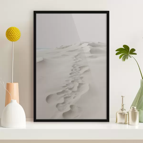 De poster bestaat uit een frame, plexiglas, geprinte afbeelding en spaanplaat achterkant. De poster kan meteen aan de muur worden gehangen dankzij de bevestigingen op de achterkant.