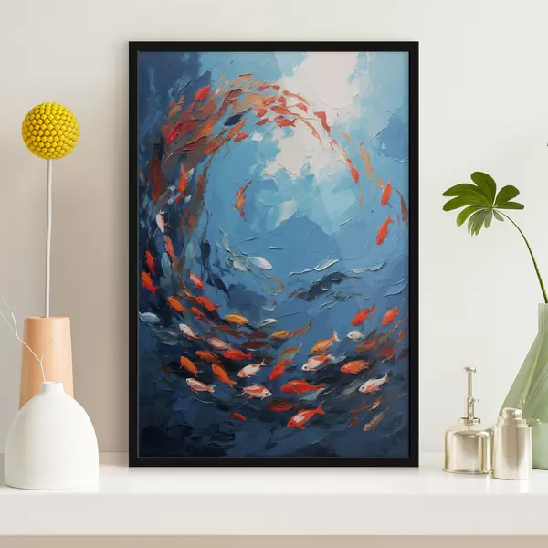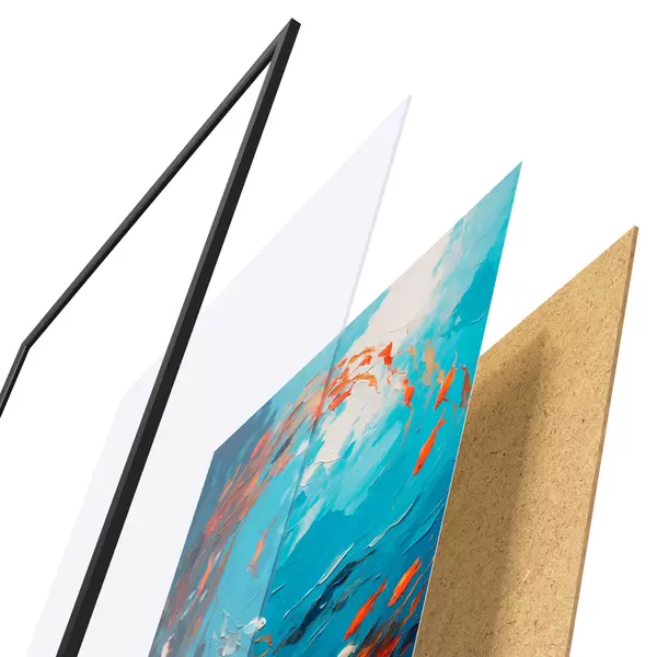 De poster bestaat uit een frame, plexiglas, geprinte afbeelding en spaanplaat achterkant. De poster kan meteen aan de muur worden gehangen dankzij de bevestigingen op de achterkant.