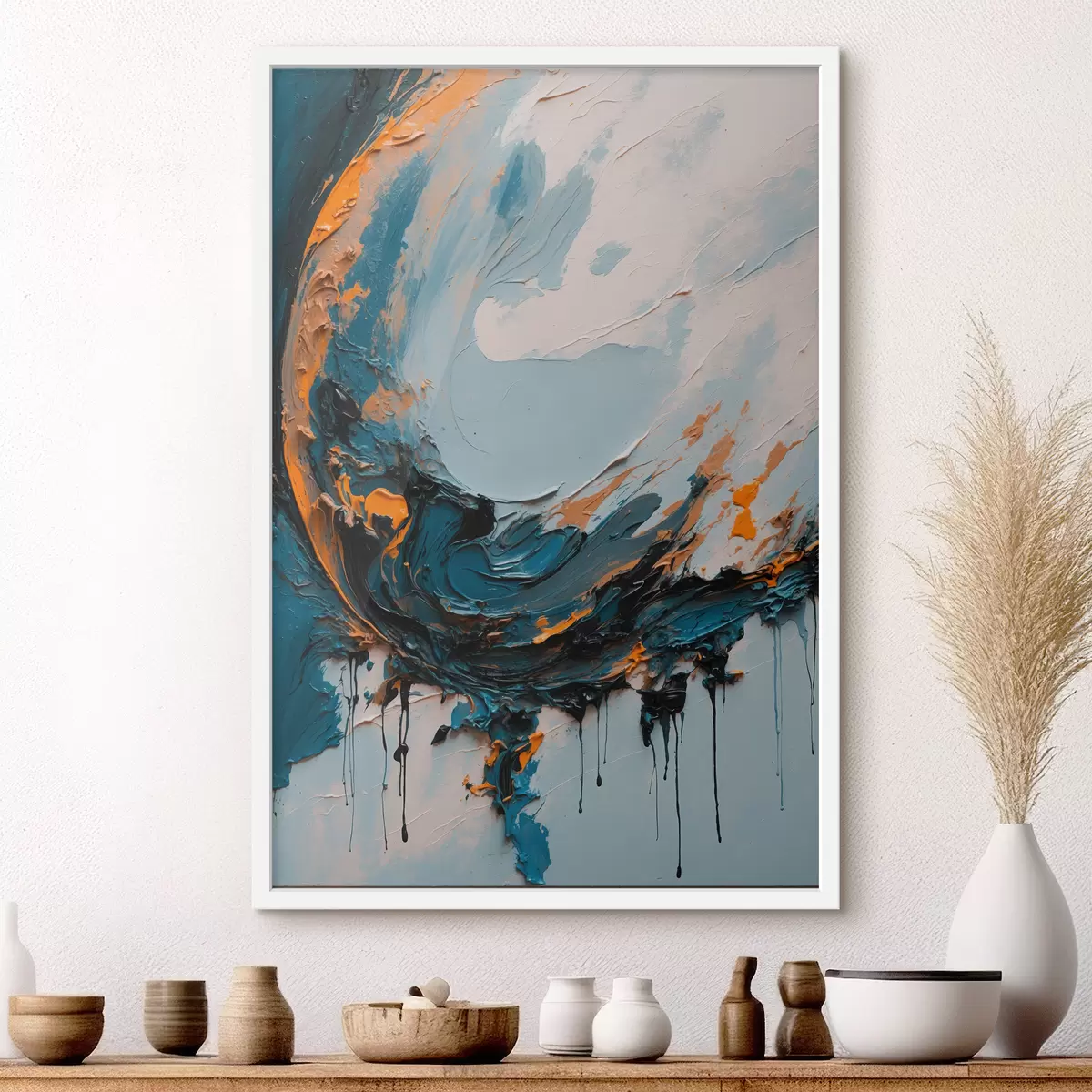 Je kunt het schilderij ophangen aan schroeven. Hiervoor leveren we bevestigingen bij onze foto's, zodat je de foto gemakkelijk kunt ophangen.