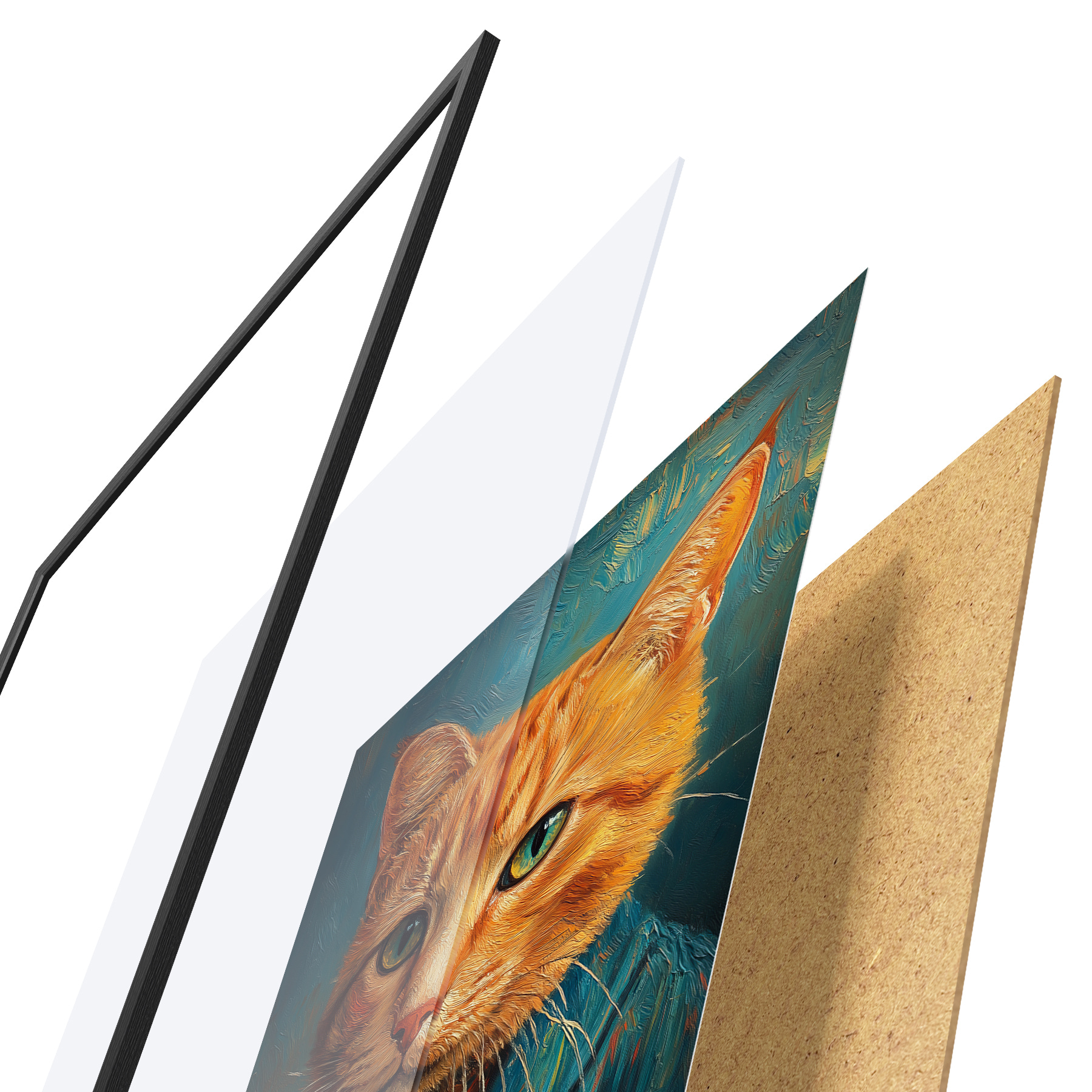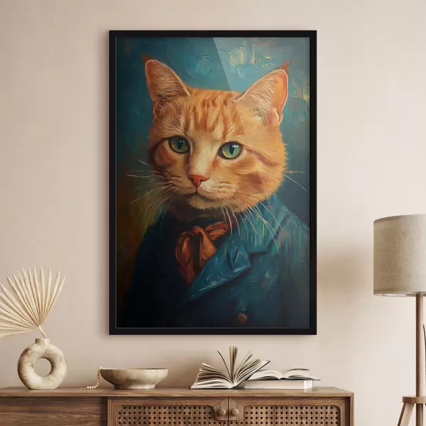 Poster Rode kat in een pak in de stijl van een Van Gogh-portret f40647