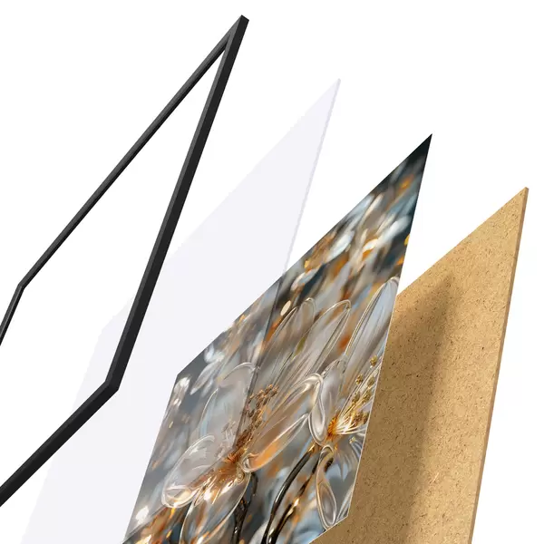 De poster bestaat uit een frame, plexiglas, geprinte afbeelding en spaanplaat achterkant. De poster kan meteen aan de muur worden gehangen dankzij de bevestigingen op de achterkant.