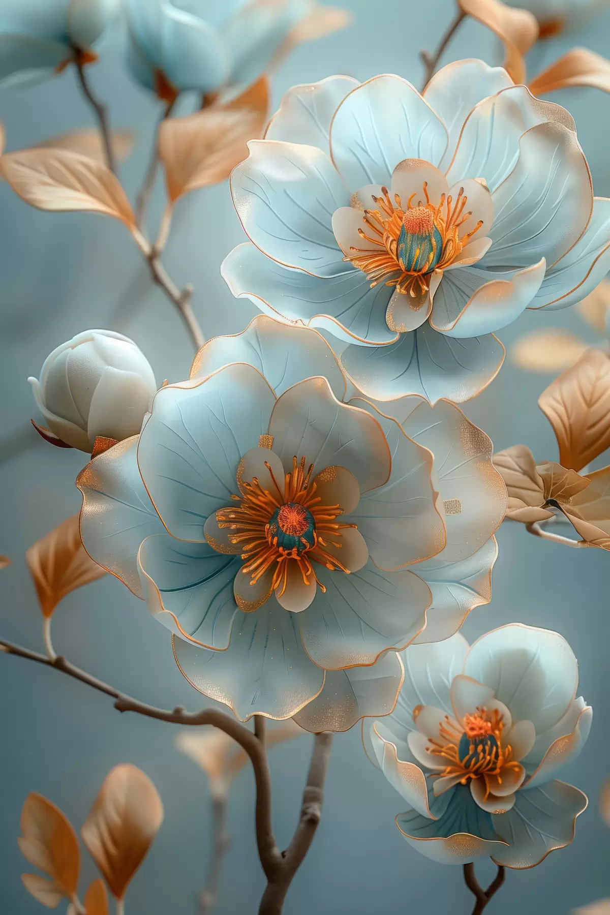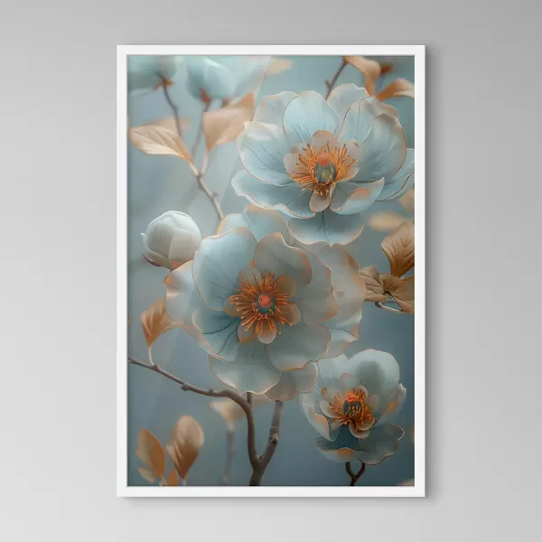 Poster Blauwe pioenrozen met oranje accent Nr f40676