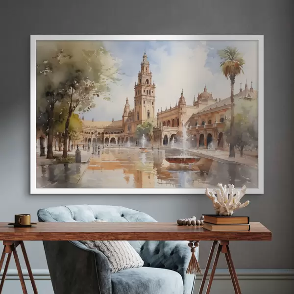 Poster Kasteelplein in de stad aquarel Nr f40681