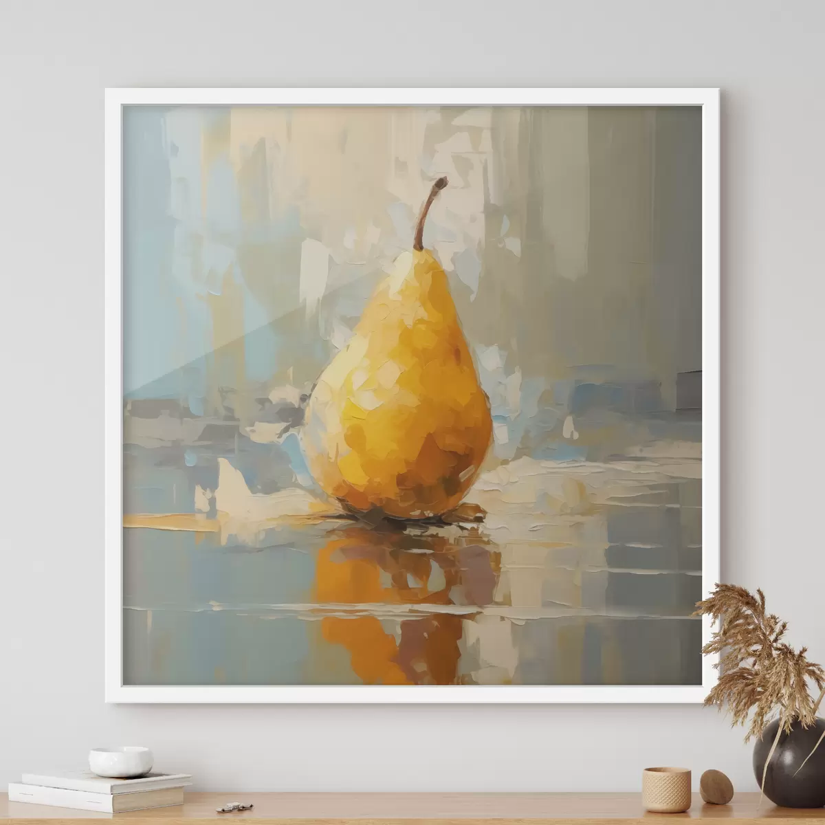 Poster Peer op pastelkleurige achtergrond, geel, oranje, grijs f40690