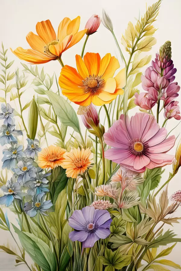 Poster veelkleurige wilde bloemen, bloemstuk Nr f40708