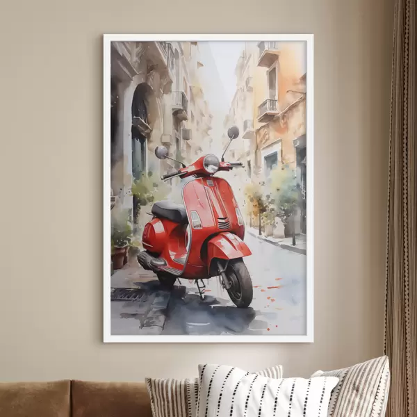 Poster Rode motorfiets op straat in Rome aquarel Nr f40728