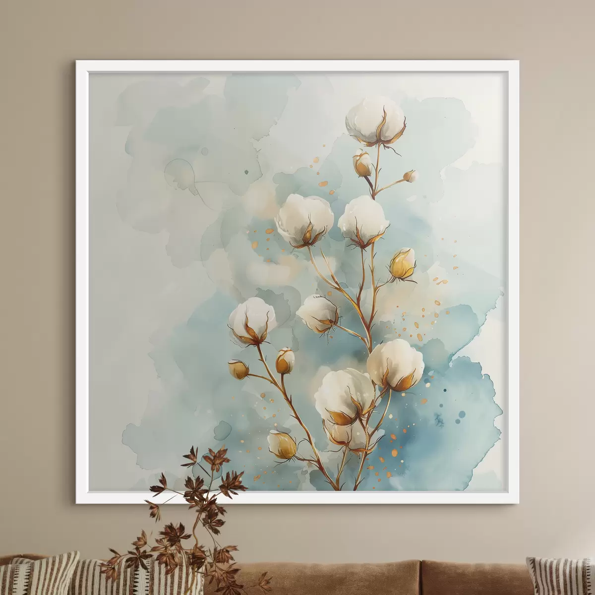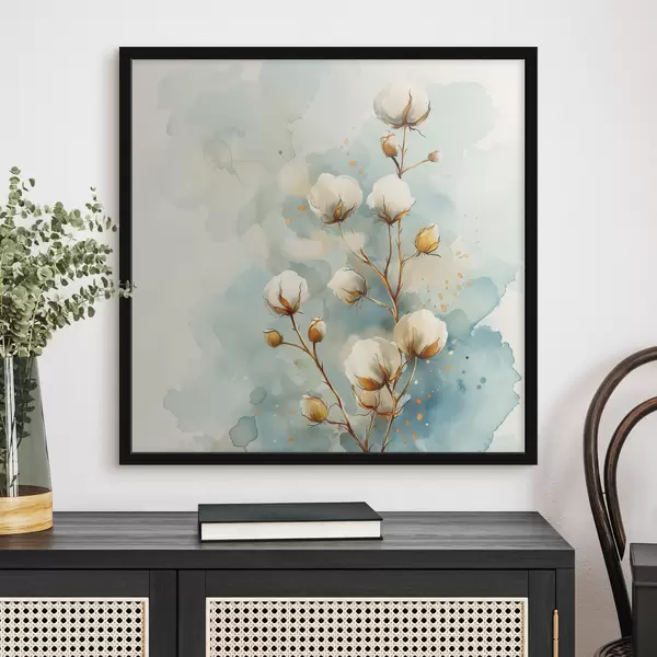 Poster Katoenen tak op aquarelachtergrond Nr f40780